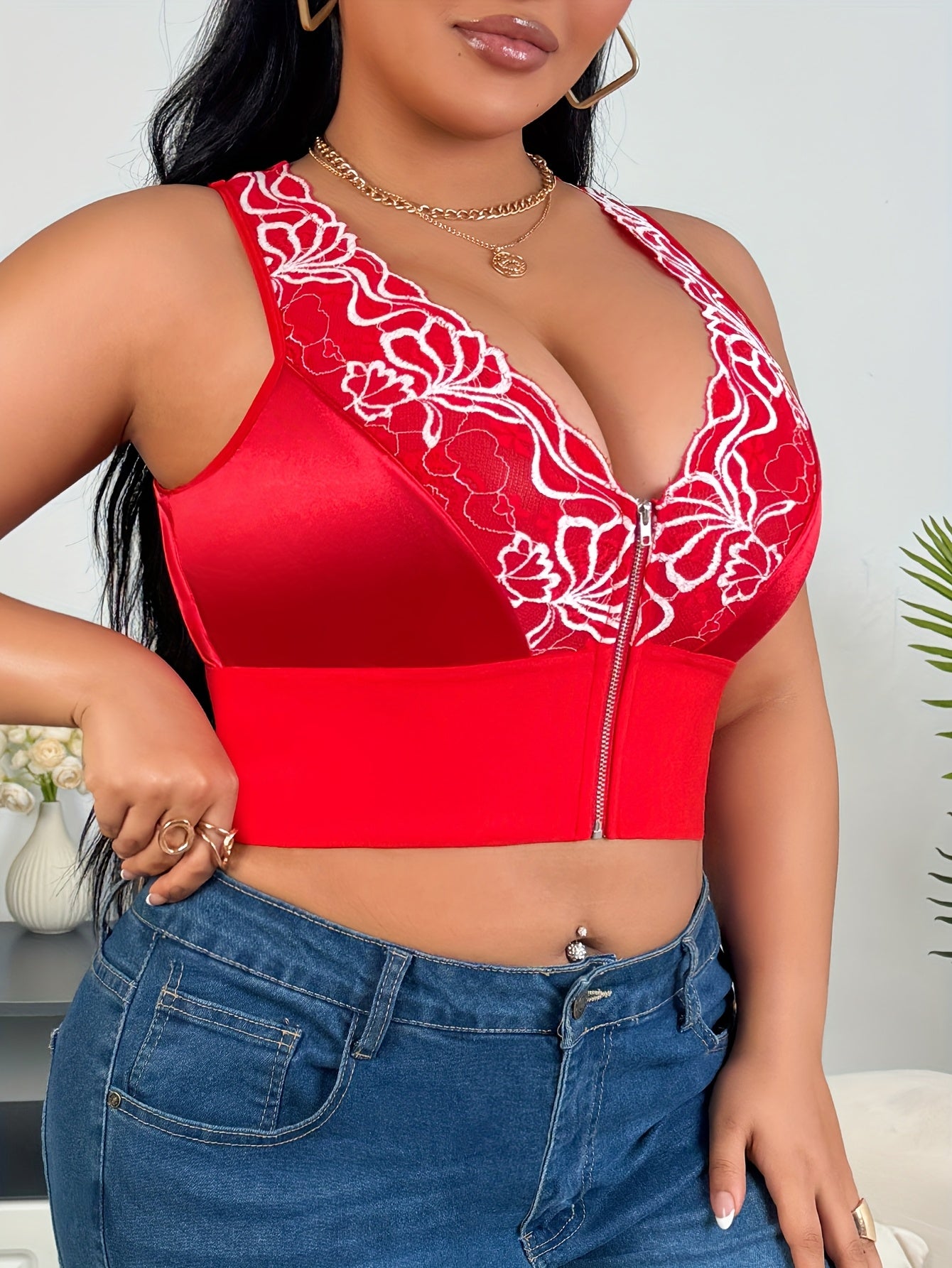 Women's Lace Trim Wrap Skirt with Zipper, Red Floral Accents