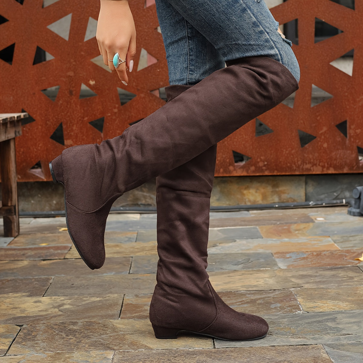 Women's Leather Low-Heeled High-Top Boots Large Sizes
