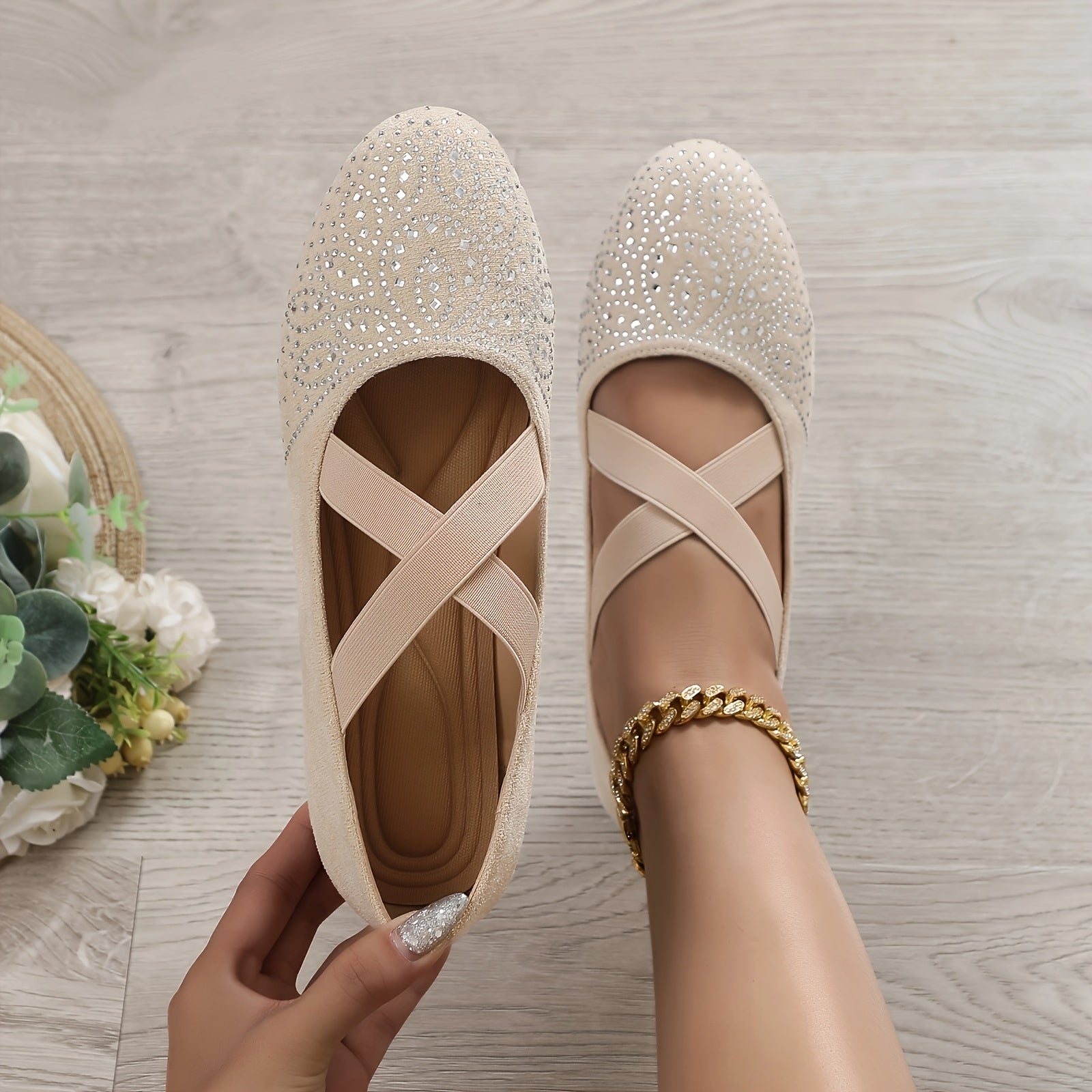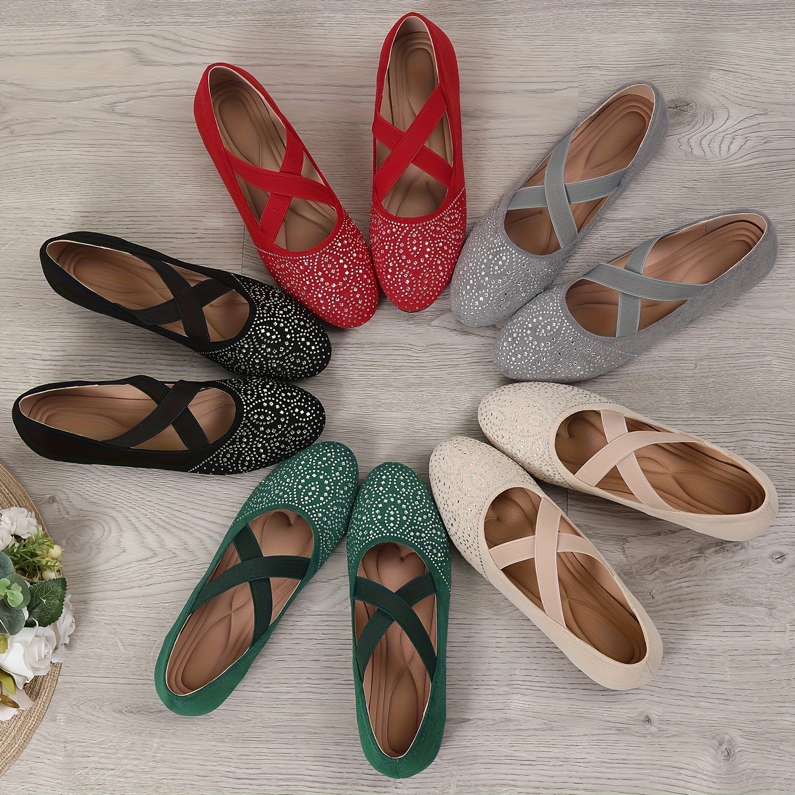 Women's Lightweight Flat Shoes Rhinestone Studded Comfortable Stylish Black