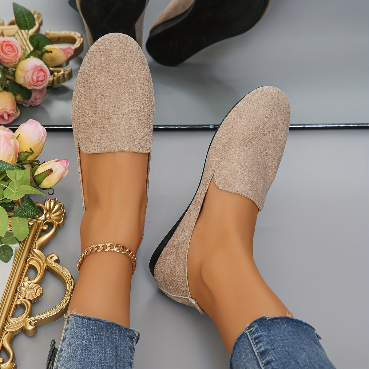 Women's Flat Shoes Solid Color Lightweight Fabric Slip-On Round Toe All-Season