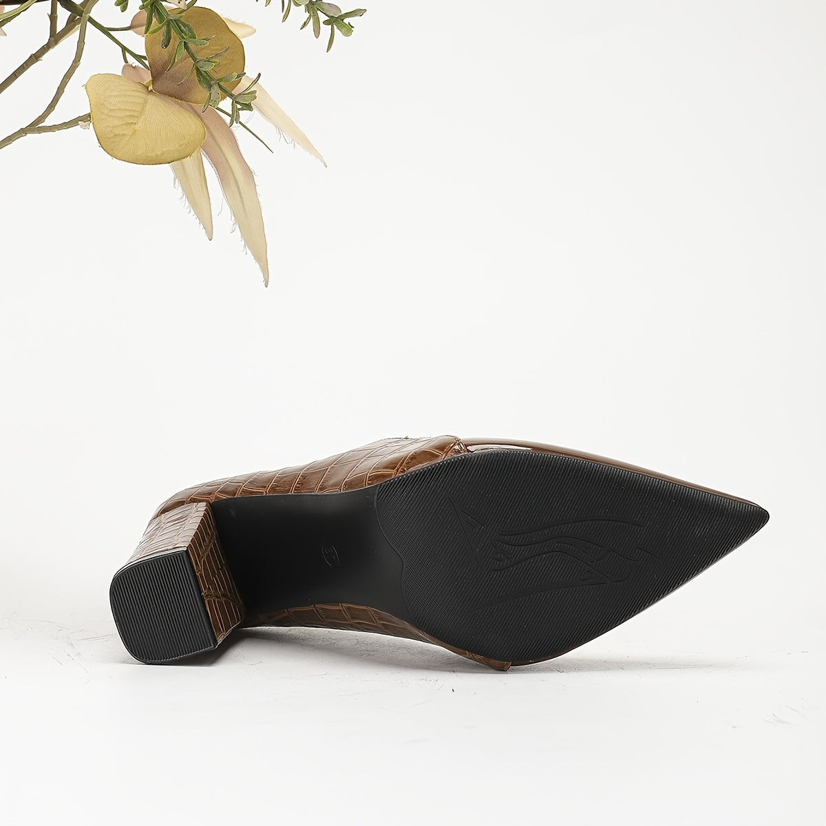 Women's Matt Faux Leather Mary Jane Pumps With Block Heel and Checkered Detail