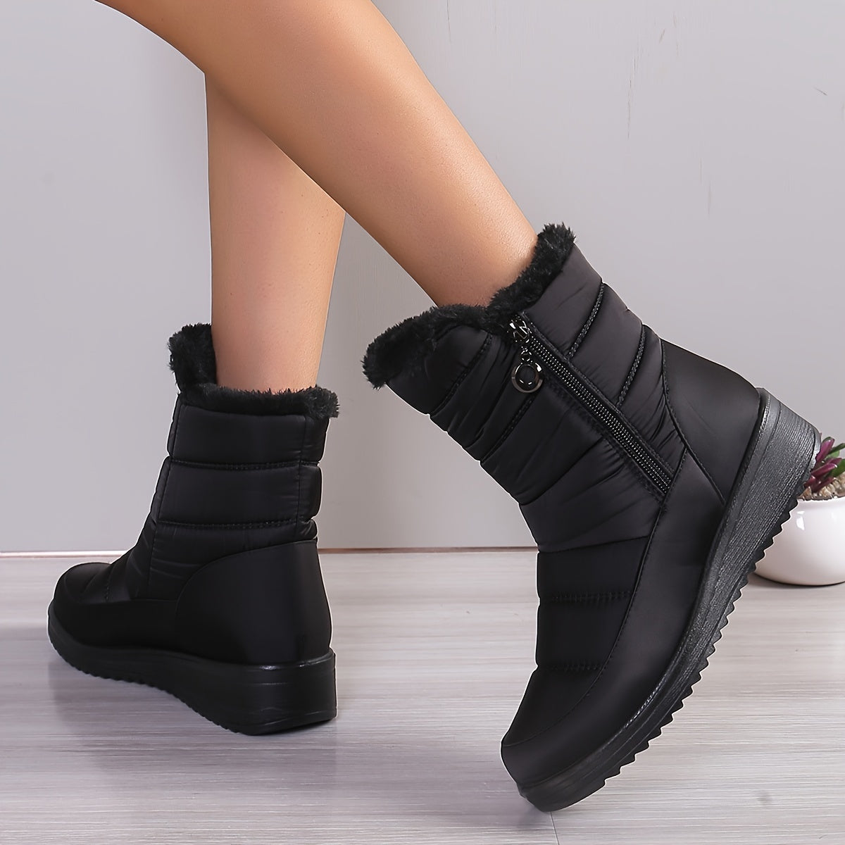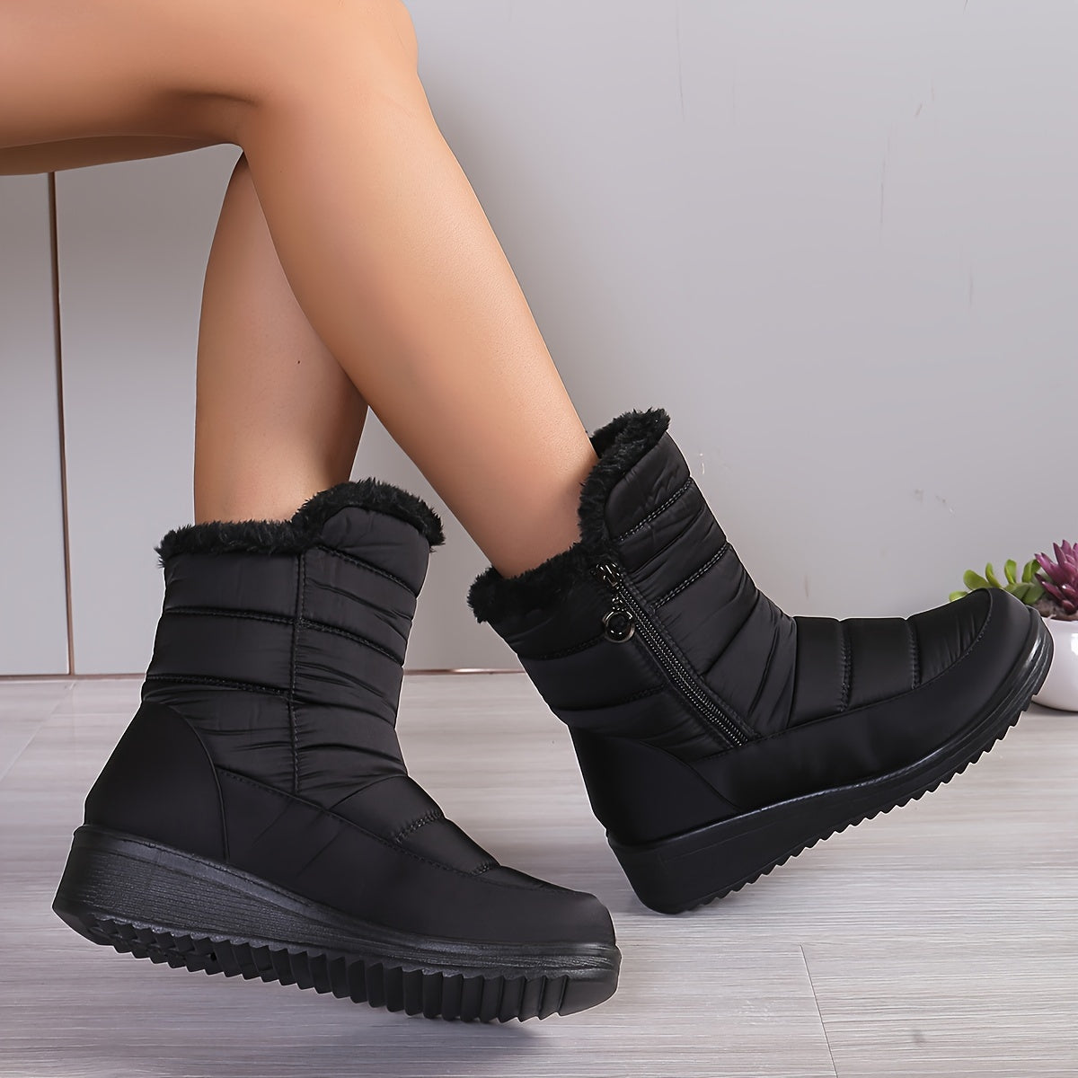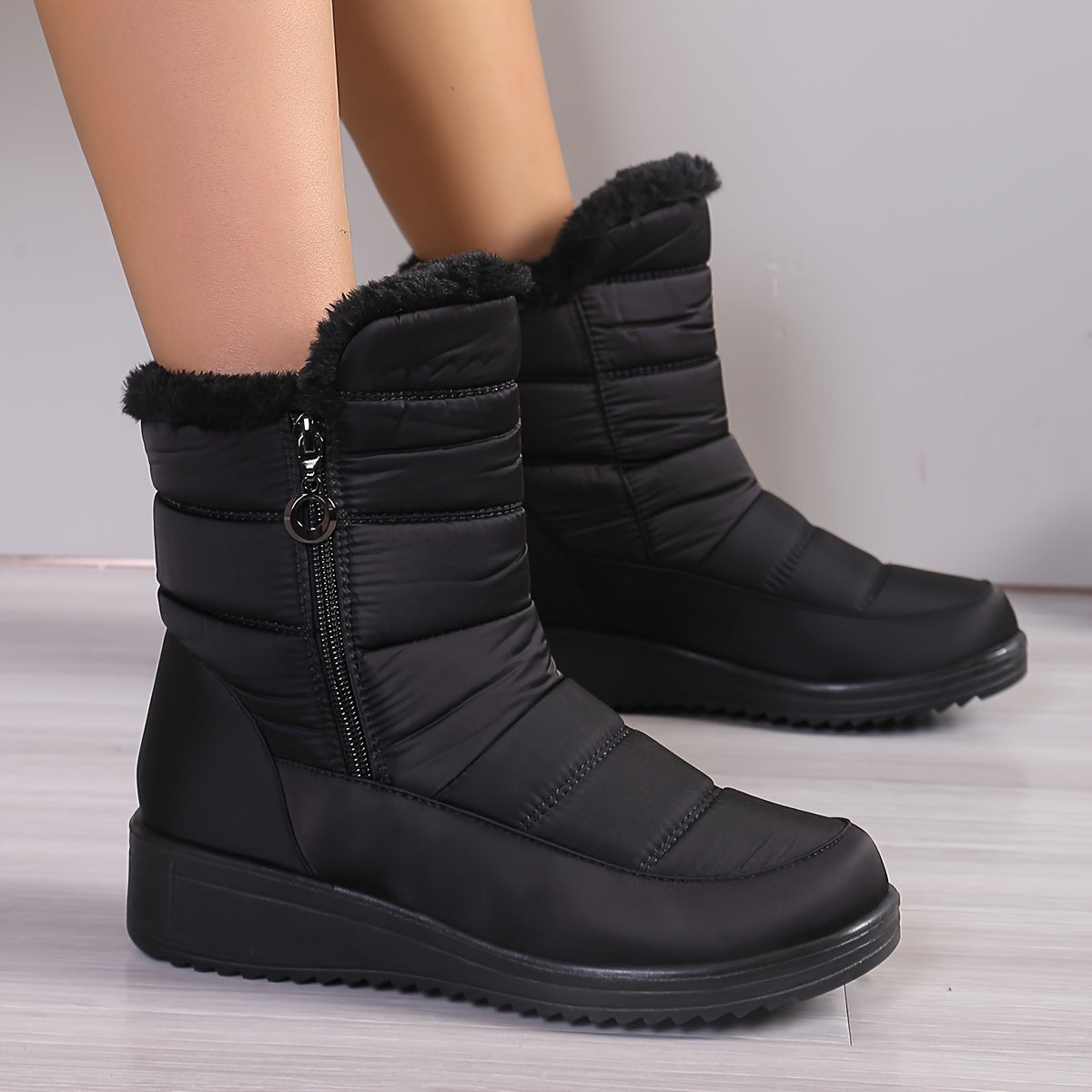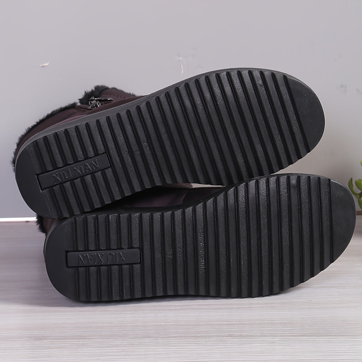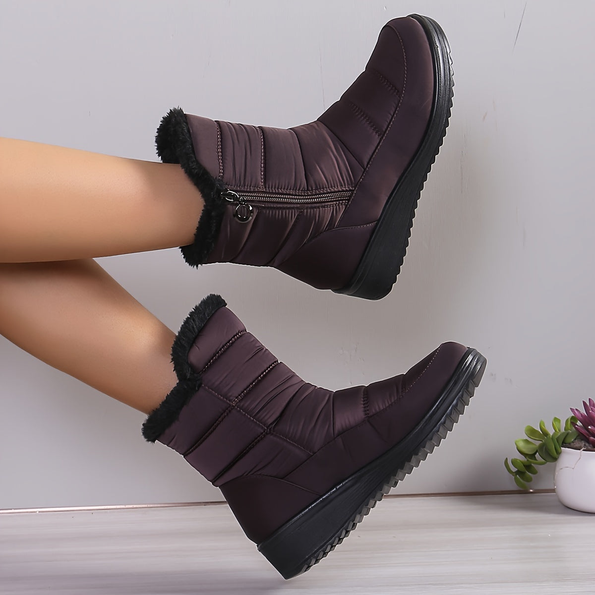 Women's Mid-Calf Winter Boots Plush Faux Fur Side Zipper Quilted Purple