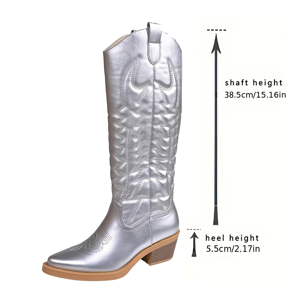 Women's Oversized Pointed Toe Chunky Heel Knee-High Western Cowboy Boots Side Zipper