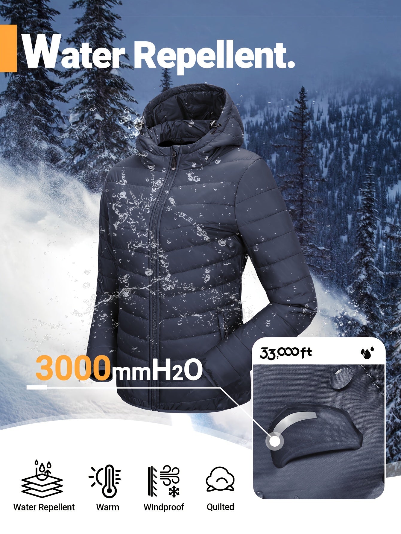 Women's Packable Quilted Puffer Jacket with Hood Waterproof Insulated Teal Blue