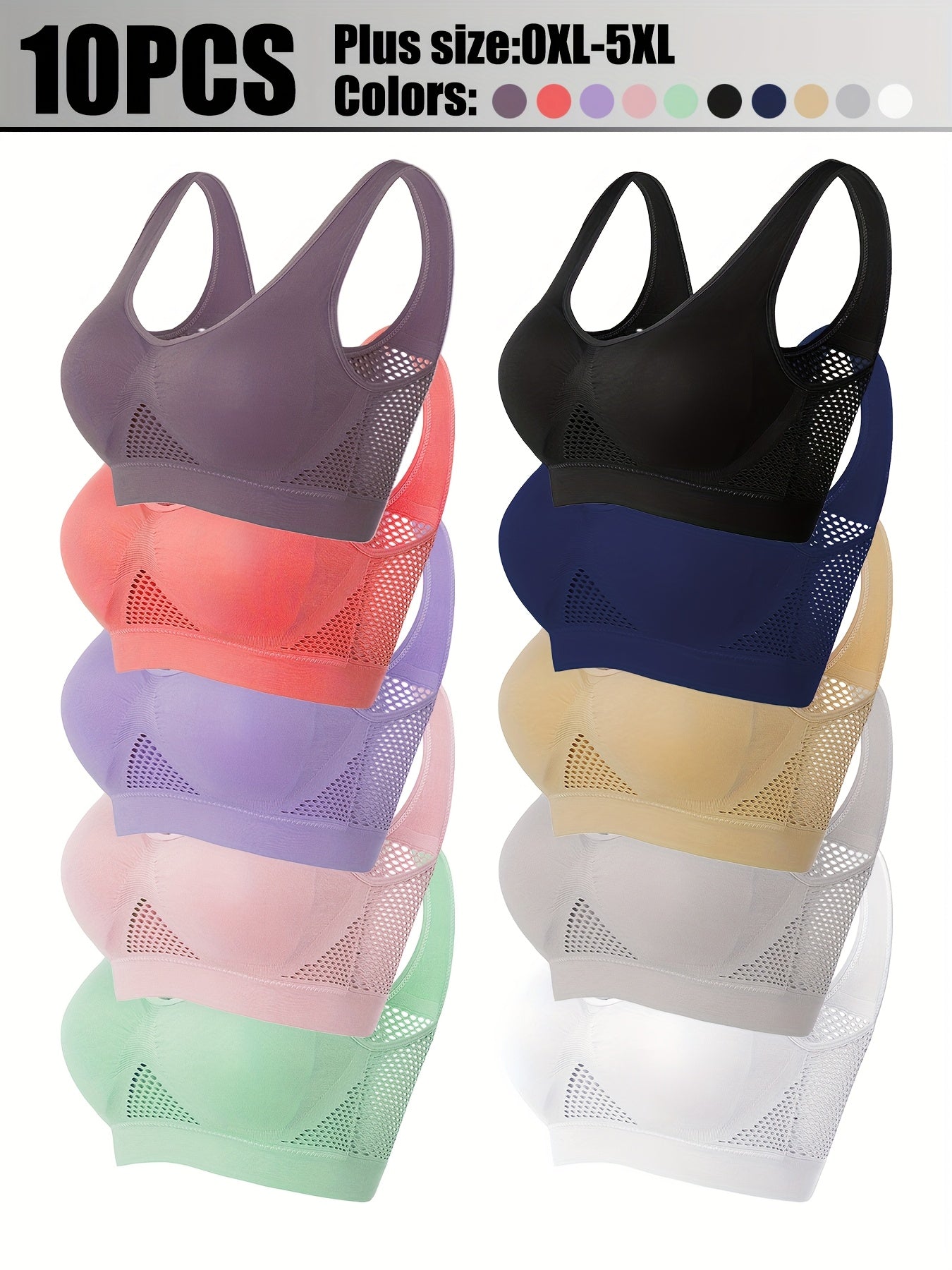 Women’s Padded Breathable Mesh Sports Bras 10 Pack for Yoga Running Gym