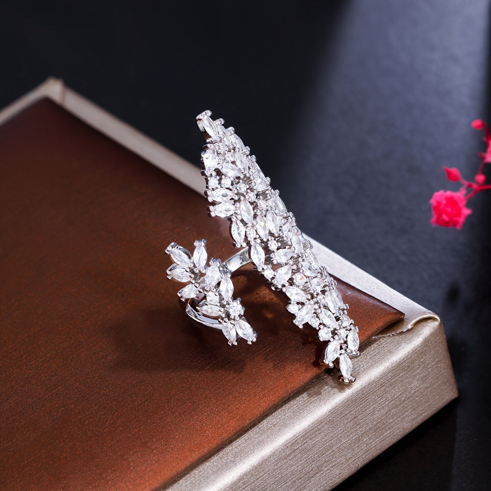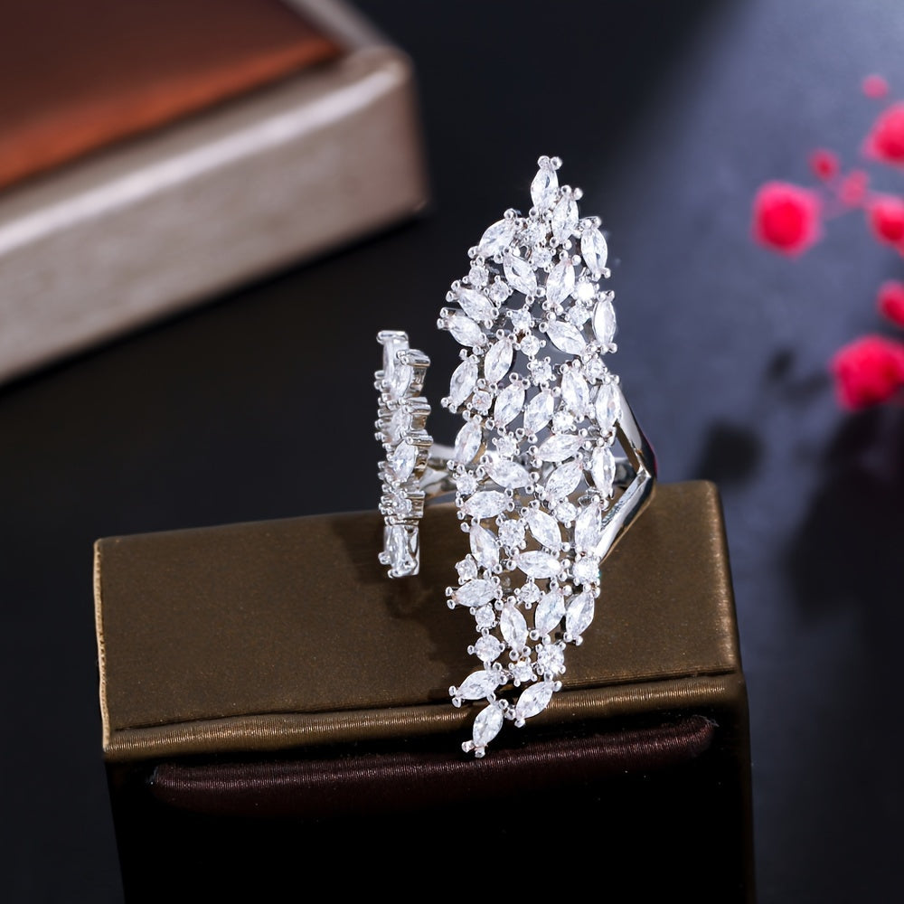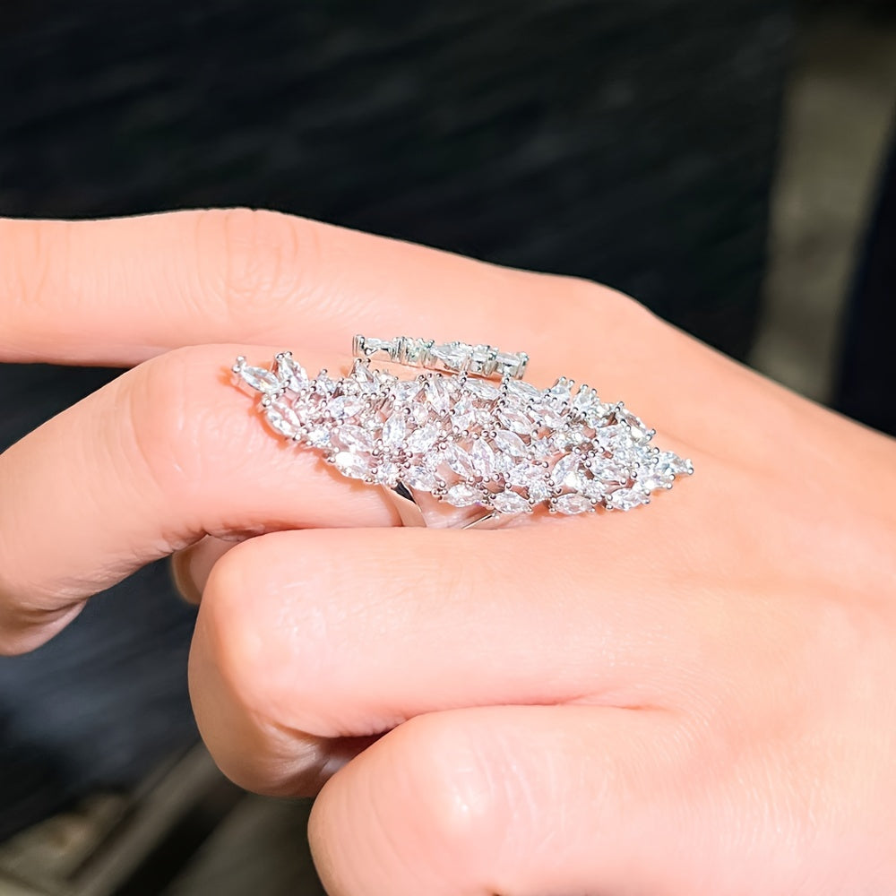 Women's Engagement Ring with Chunky White Cubic Zirconia and Pave Setting