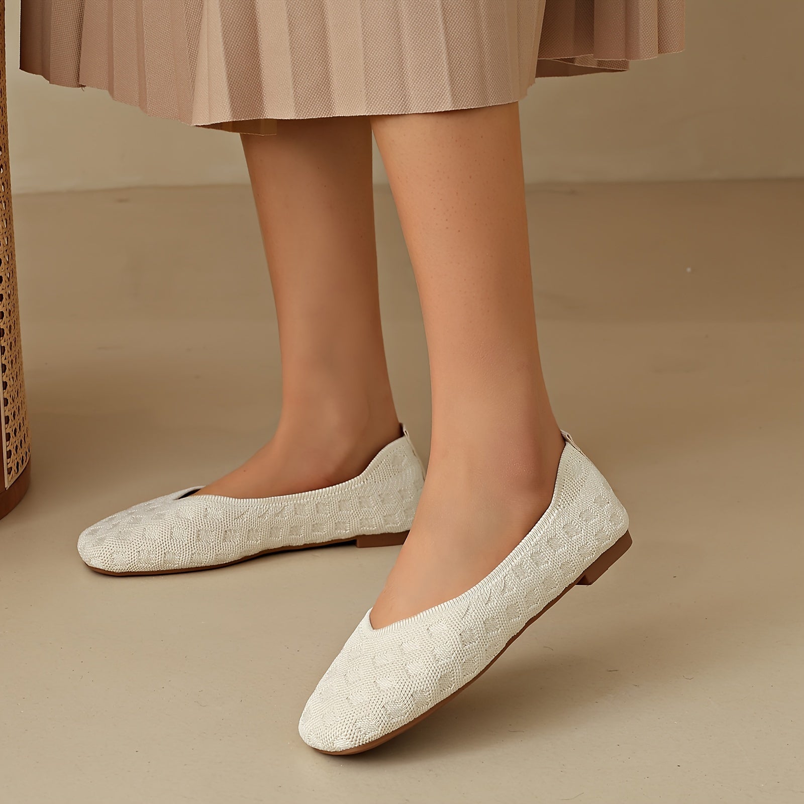 Women's Plaid Mesh Slip-On Ballet Flats Breathable Lightweight Fabric Shoes