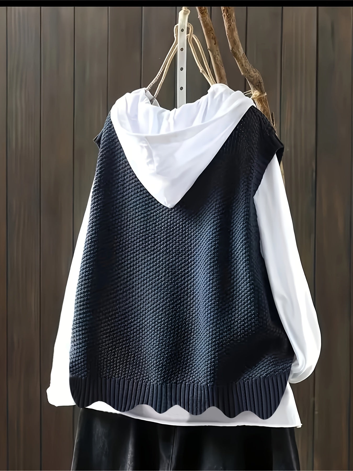 Women's Plus Size Asymmetrical Sleeveless Cardigan Dark Blue White Vest