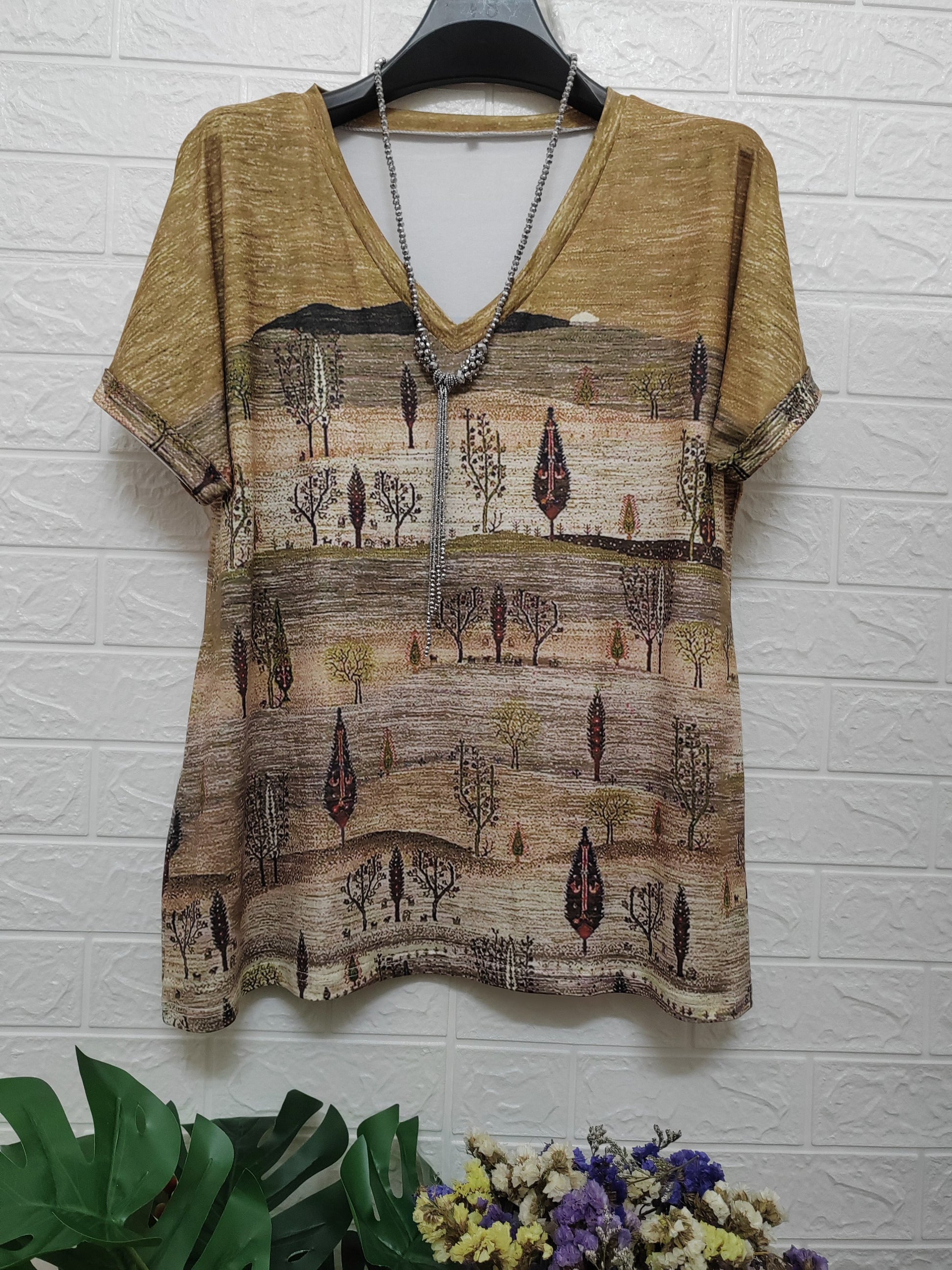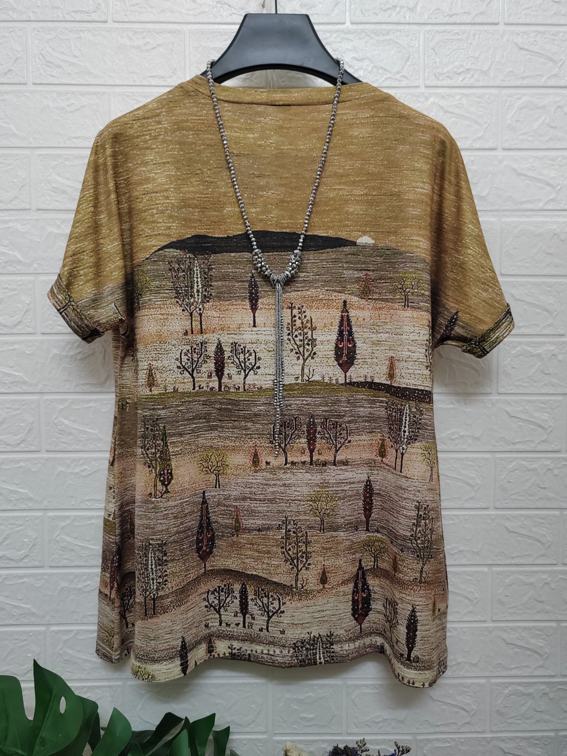 Plus Size Boho Chic V-Neck T-Shirt for Women Ethnic Print Summer Casual Knit Polyester Spandex
