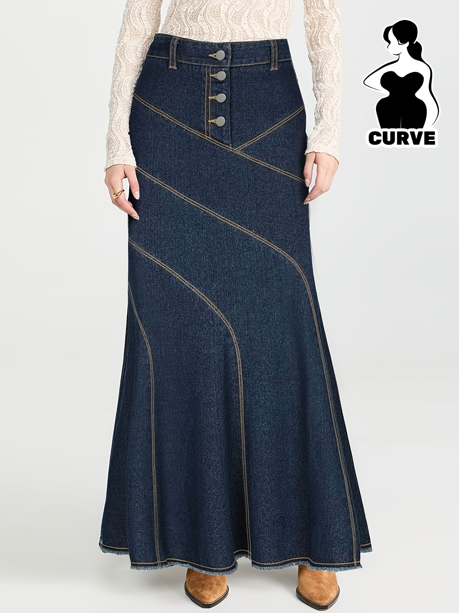 Women's Plus Size Denim Skirt Woven Fabric Solid Color Straight Cut