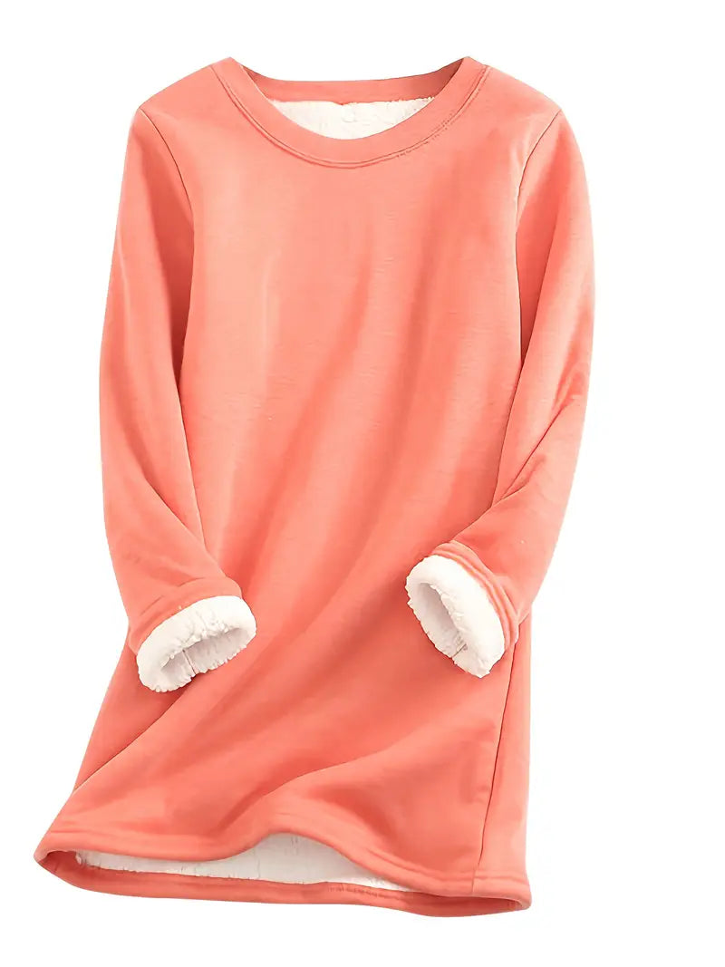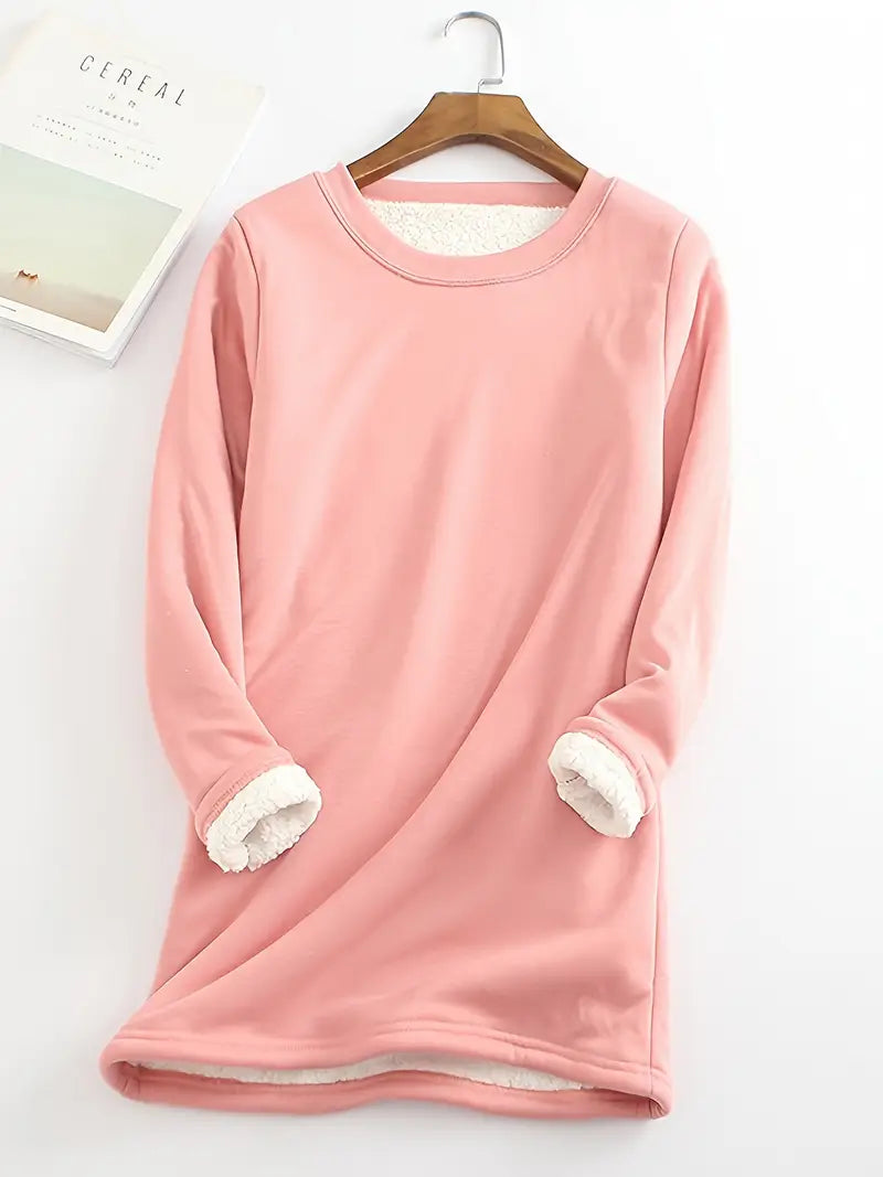 Women's Plus Size Fleece-Lined Thermal Long Sleeve Tunic Top Cozy Winter Casual Pullover