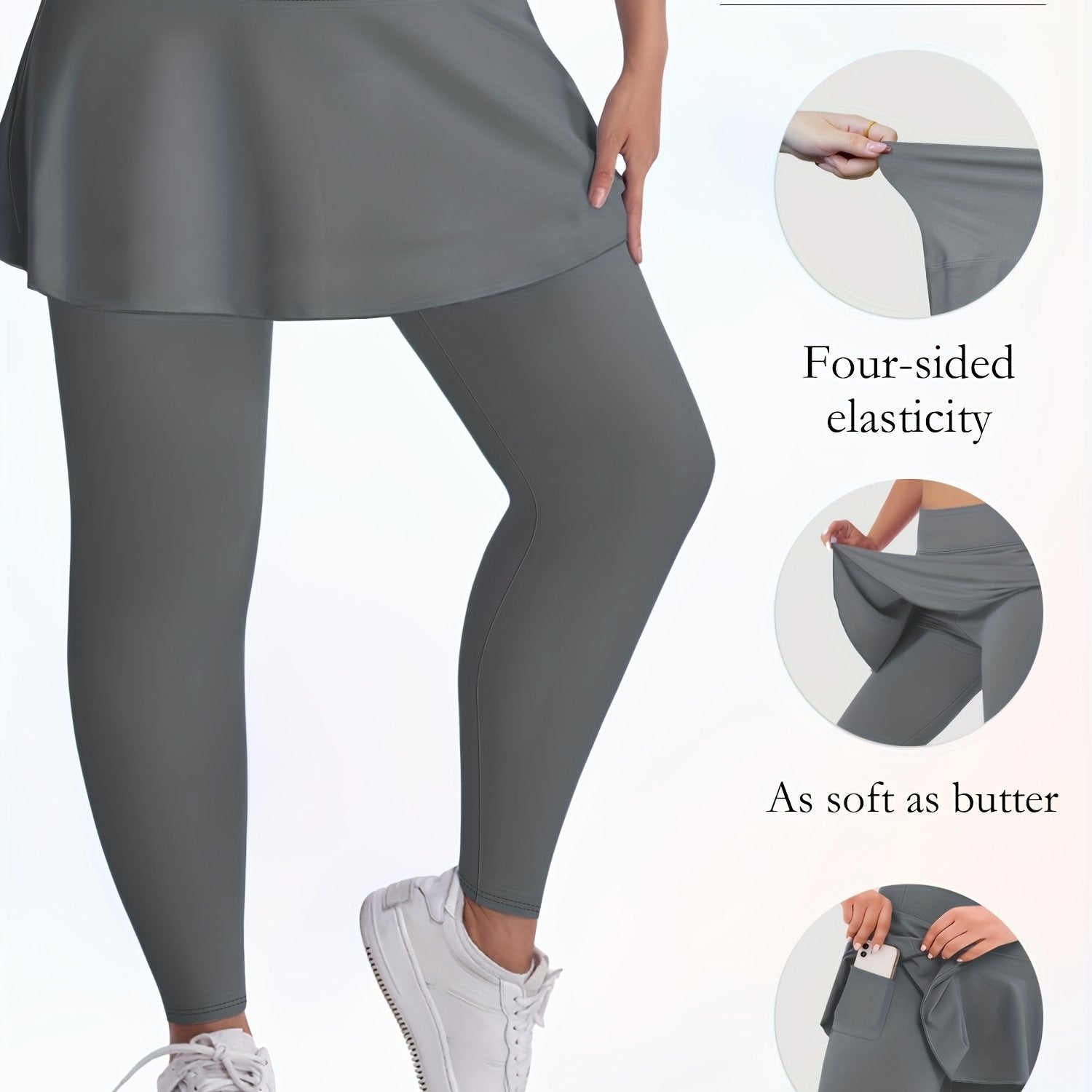 Women's Plus Size High-Waist Stretch Skort with Pockets Soft Polyester Blend