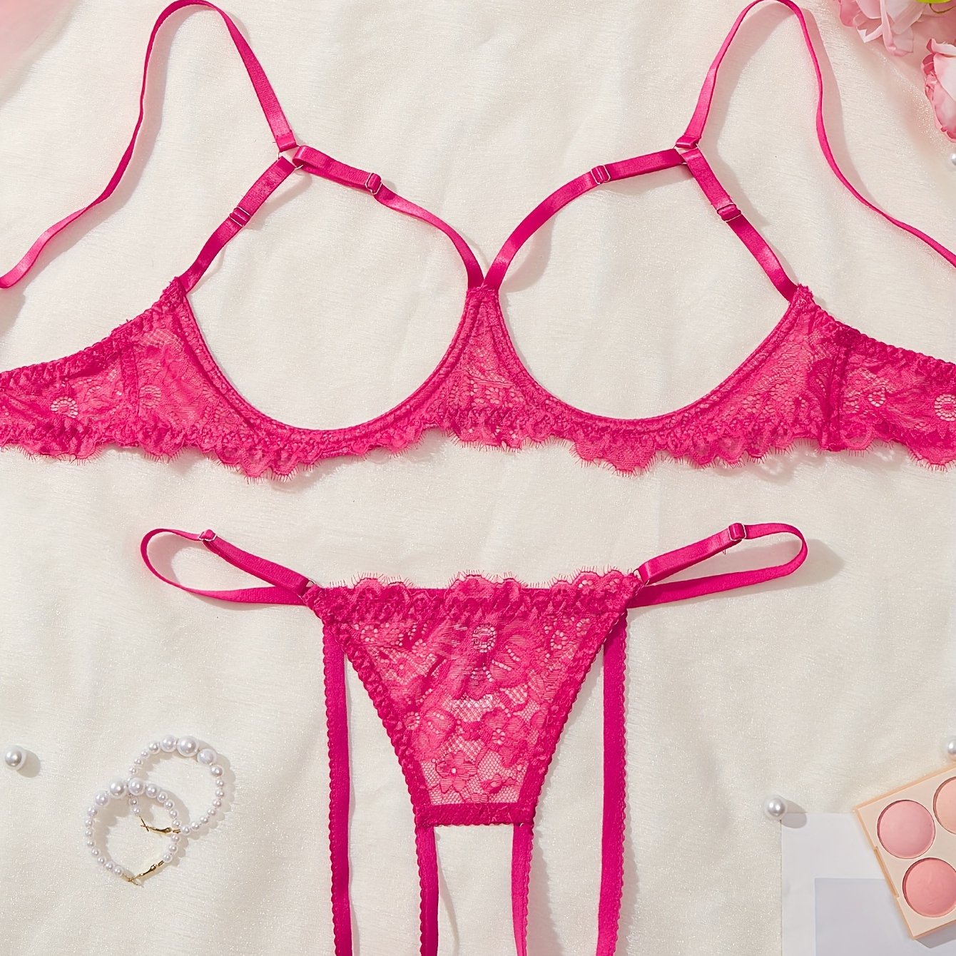 Women's Plus Size Lace Lingerie Set Open Bust Thong See-Through