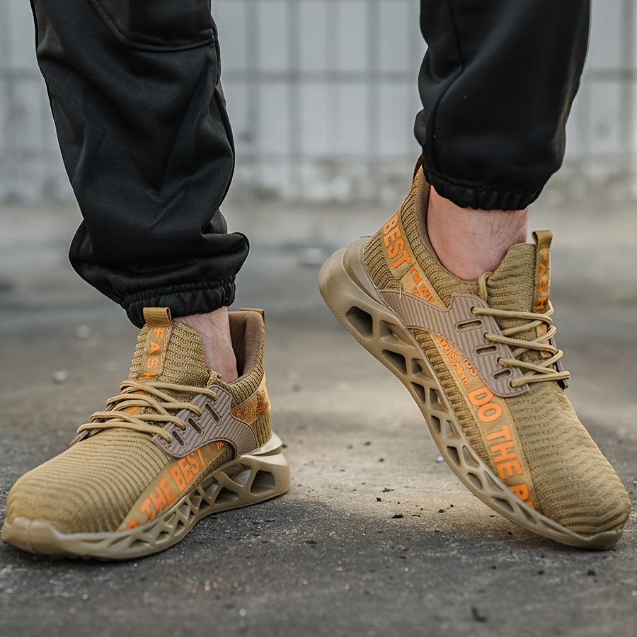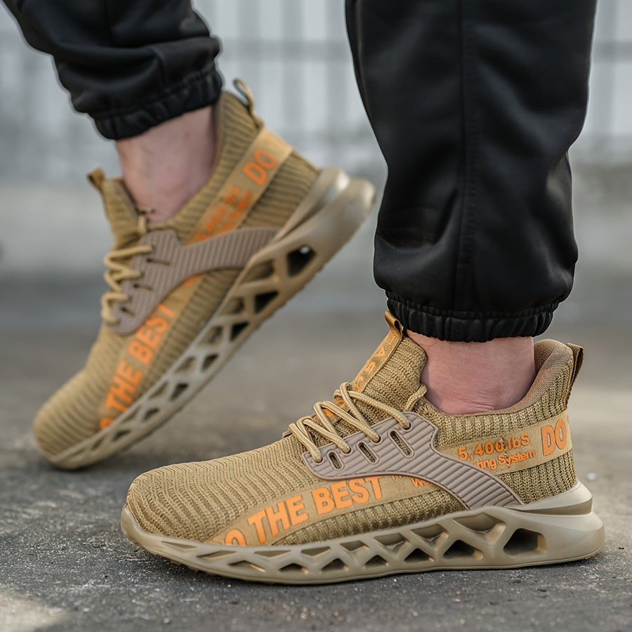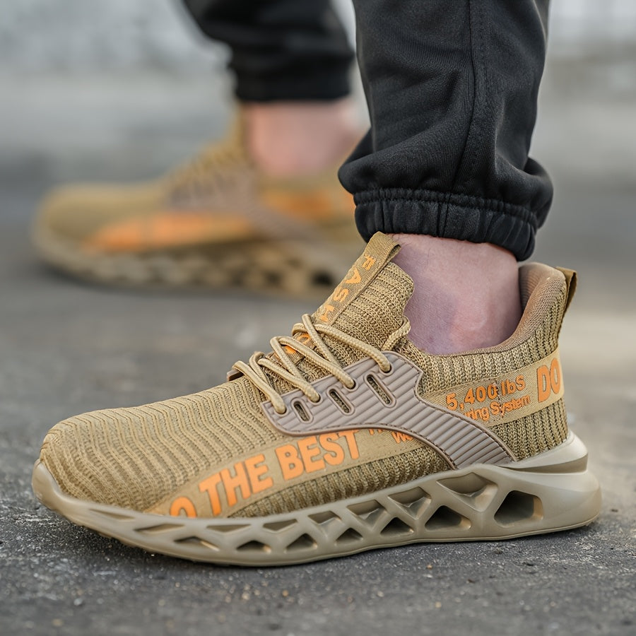 Women'S Plus Size Safety Sneakers Breathable Knit Beige Steel Toe Anti-Puncture