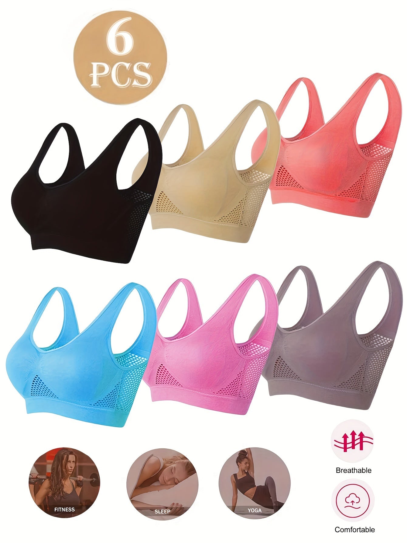 Women’s Plus Size Seamless Sports Bras 6-Pack V-Neck Removable Pads