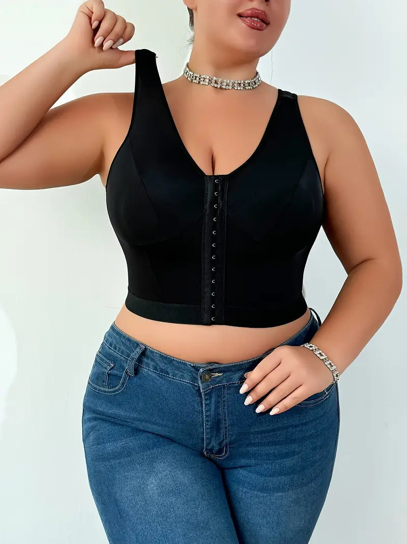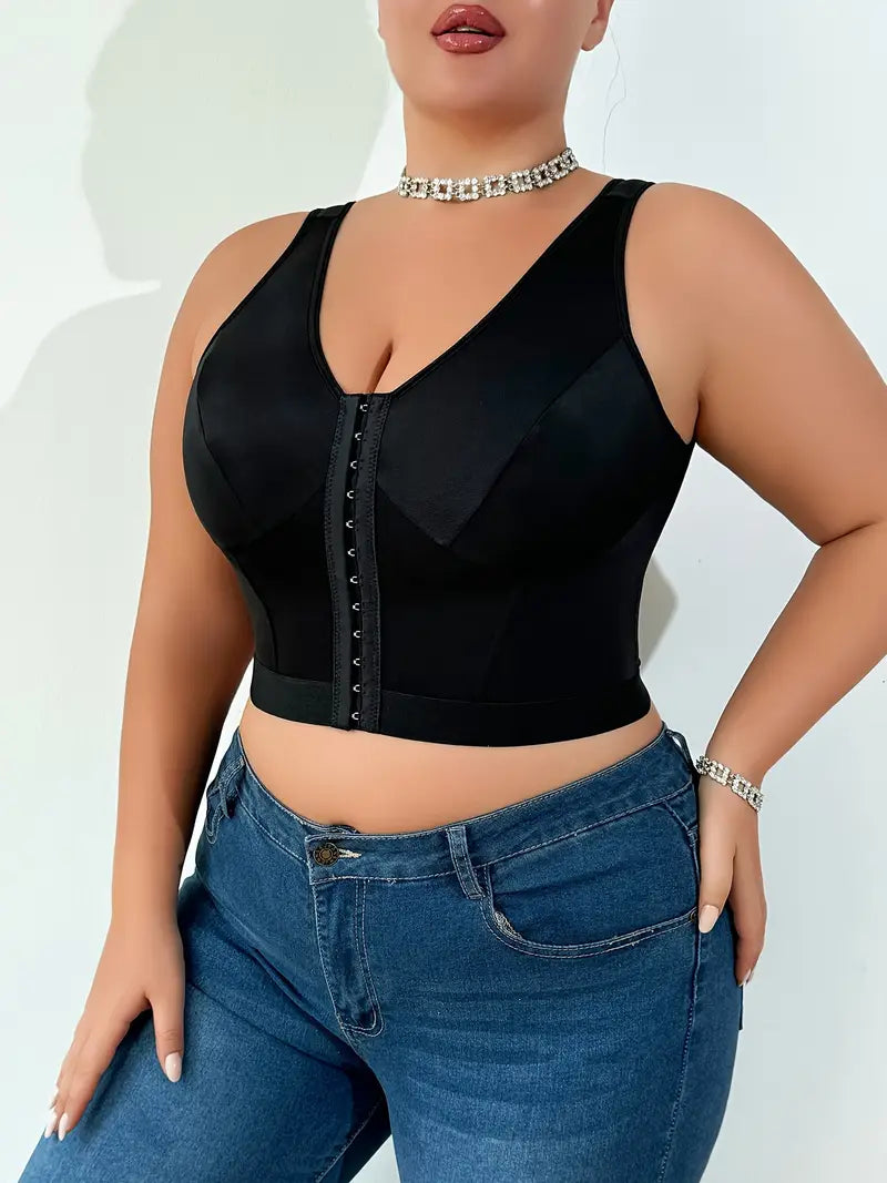 Women's Plus Size Seamless Shapewear Top with Front Closure Breathable Polyester