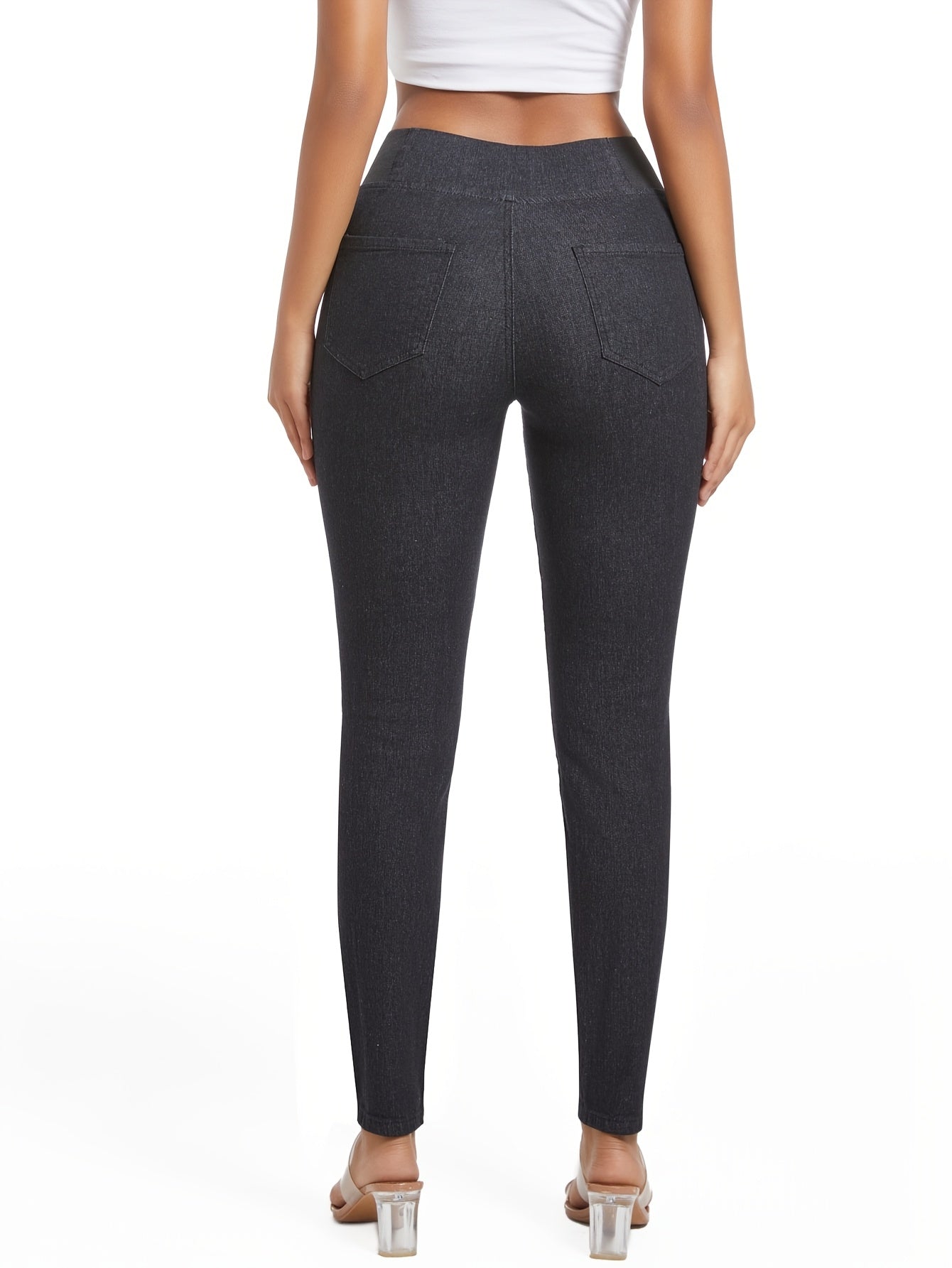 Women's Plus Size Stretch Denim Jeans High-Rise Slim Fit Black/Dark Gray