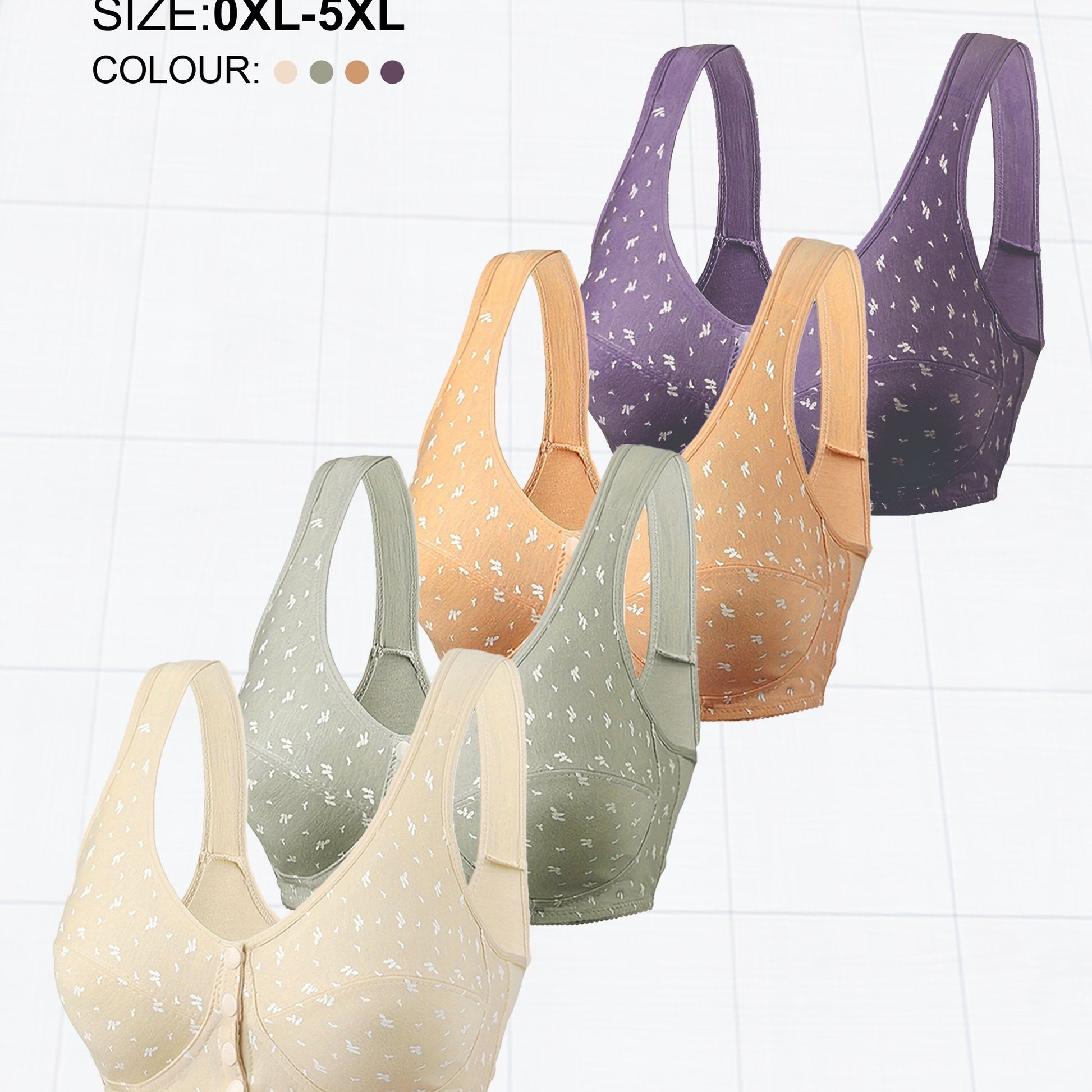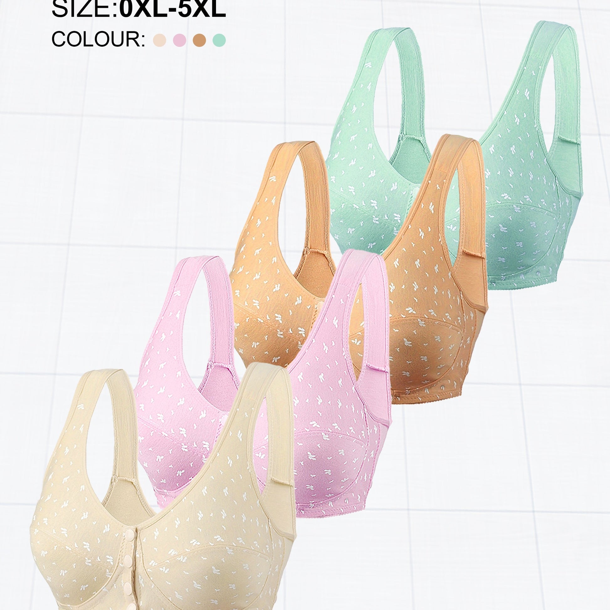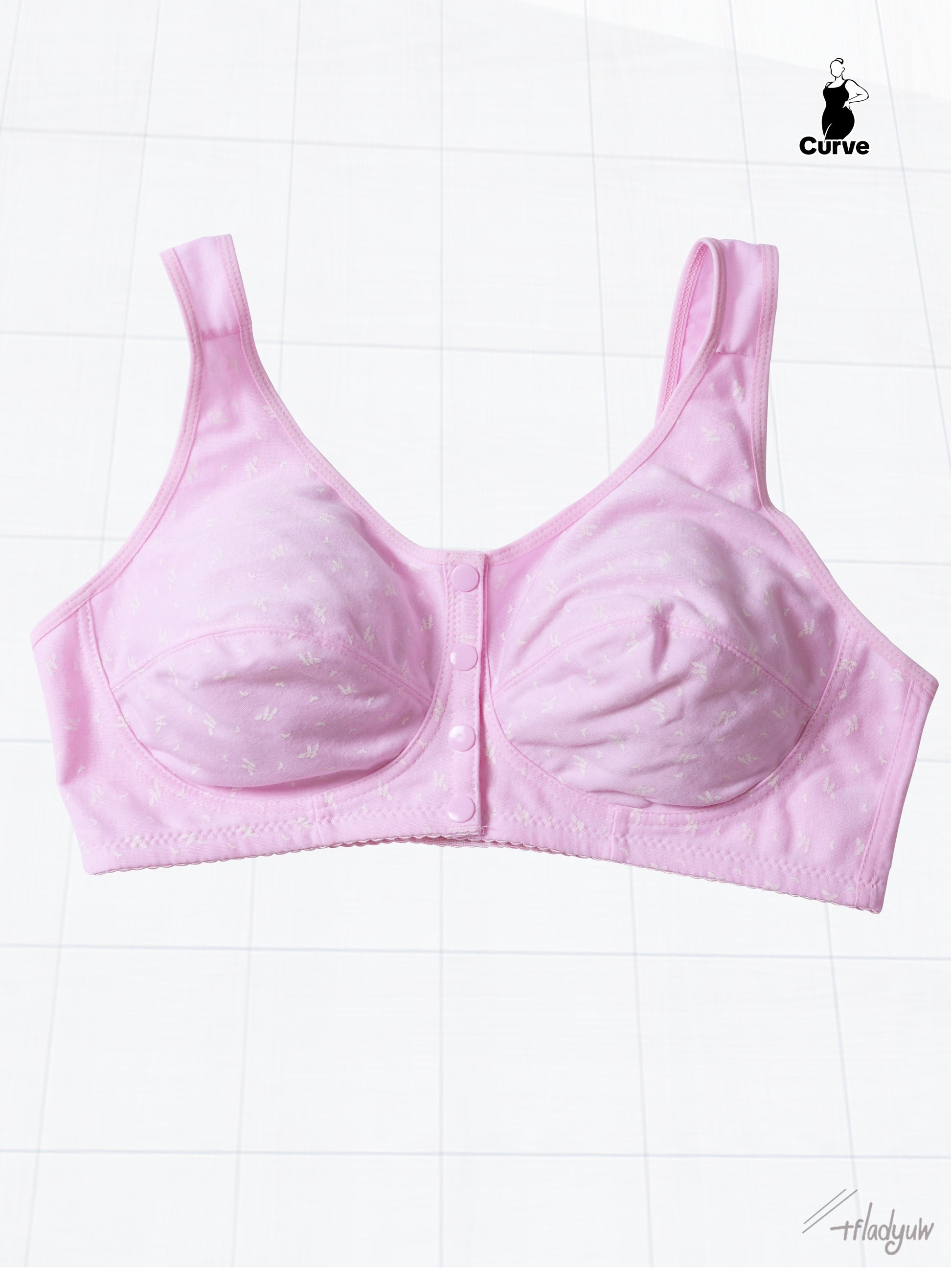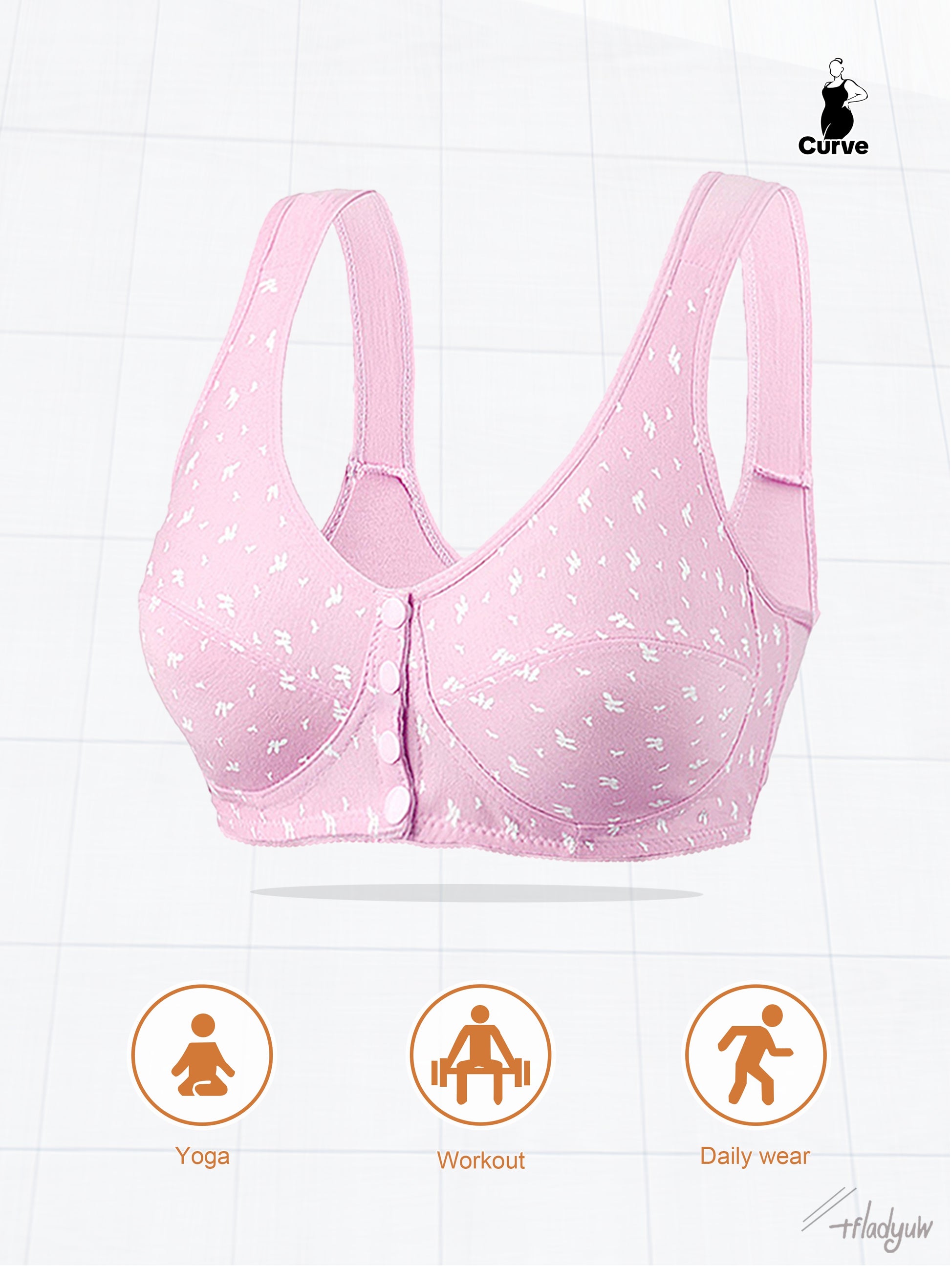Women's Plus Size Wireless Bra Set with Buttons, Random Prints, Comfortable
