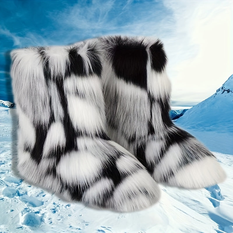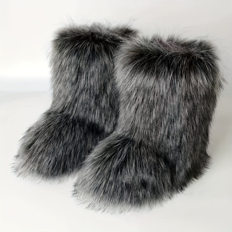 Women's Plush Faux Fur Mid-Calf Boots, Oversized, Harajuku Style