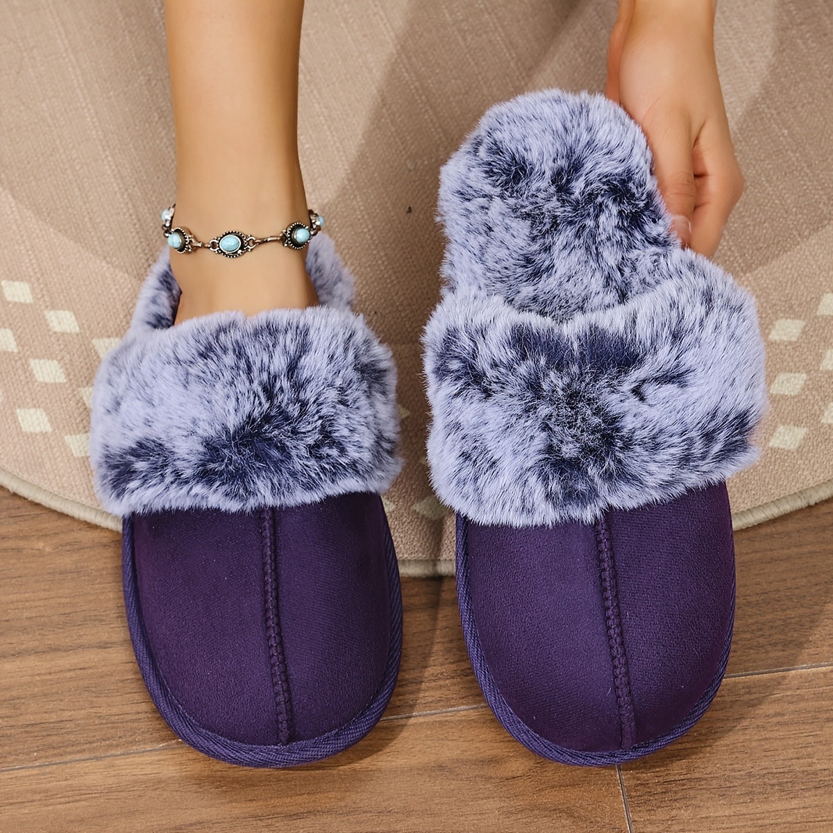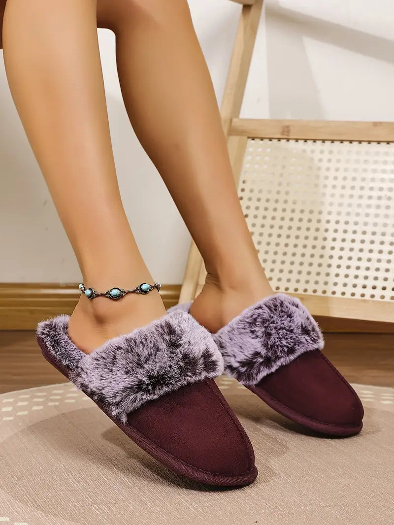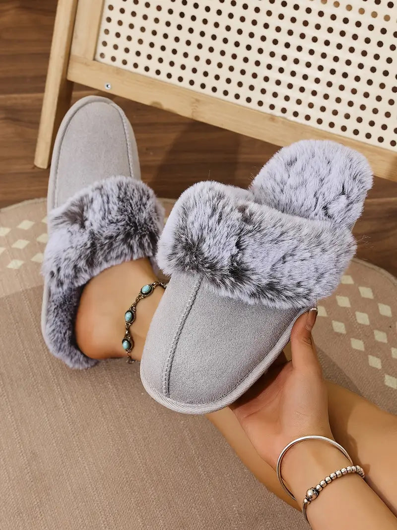 Women's Plush Lined Slippers with Glittery Gold Sole Indoor House Shoes