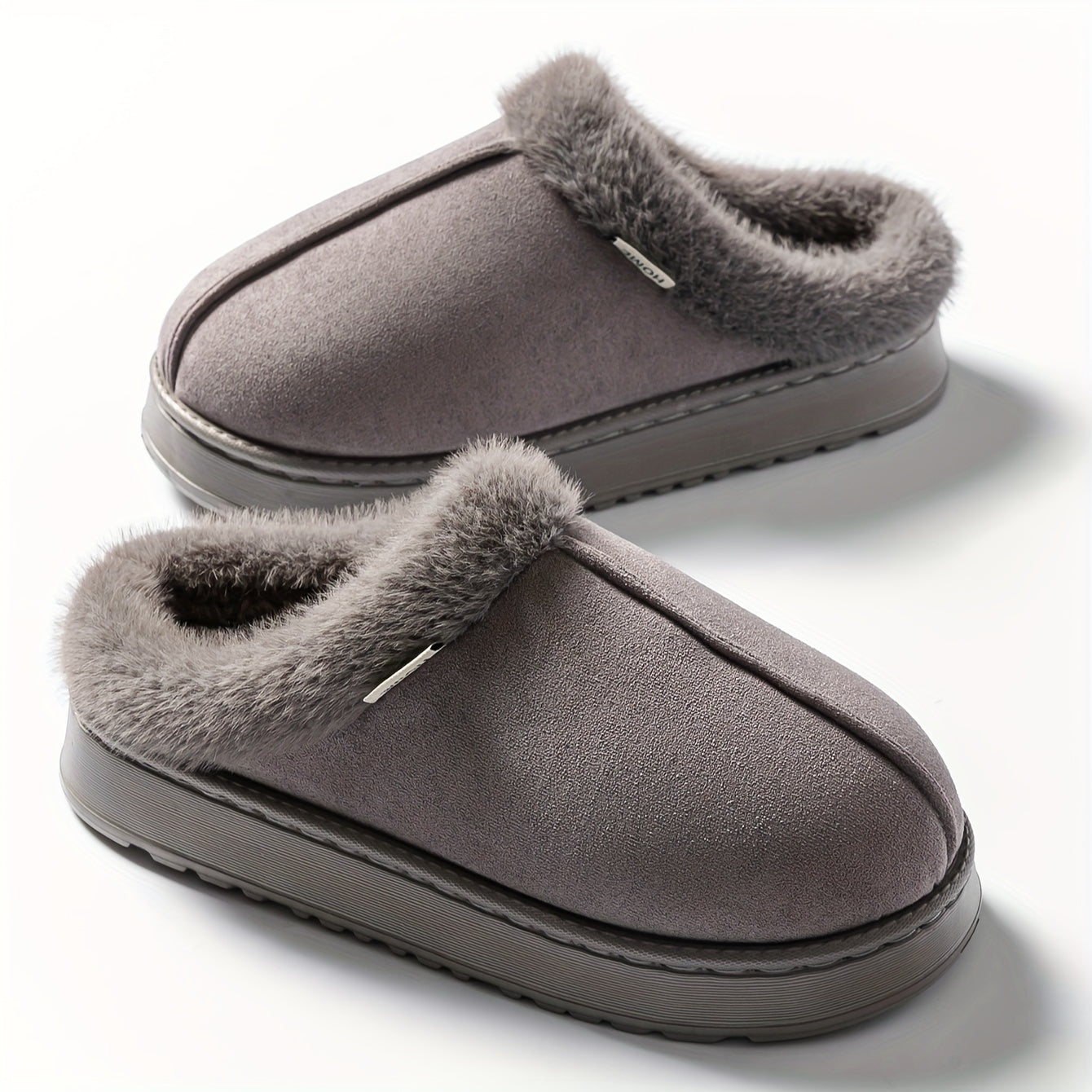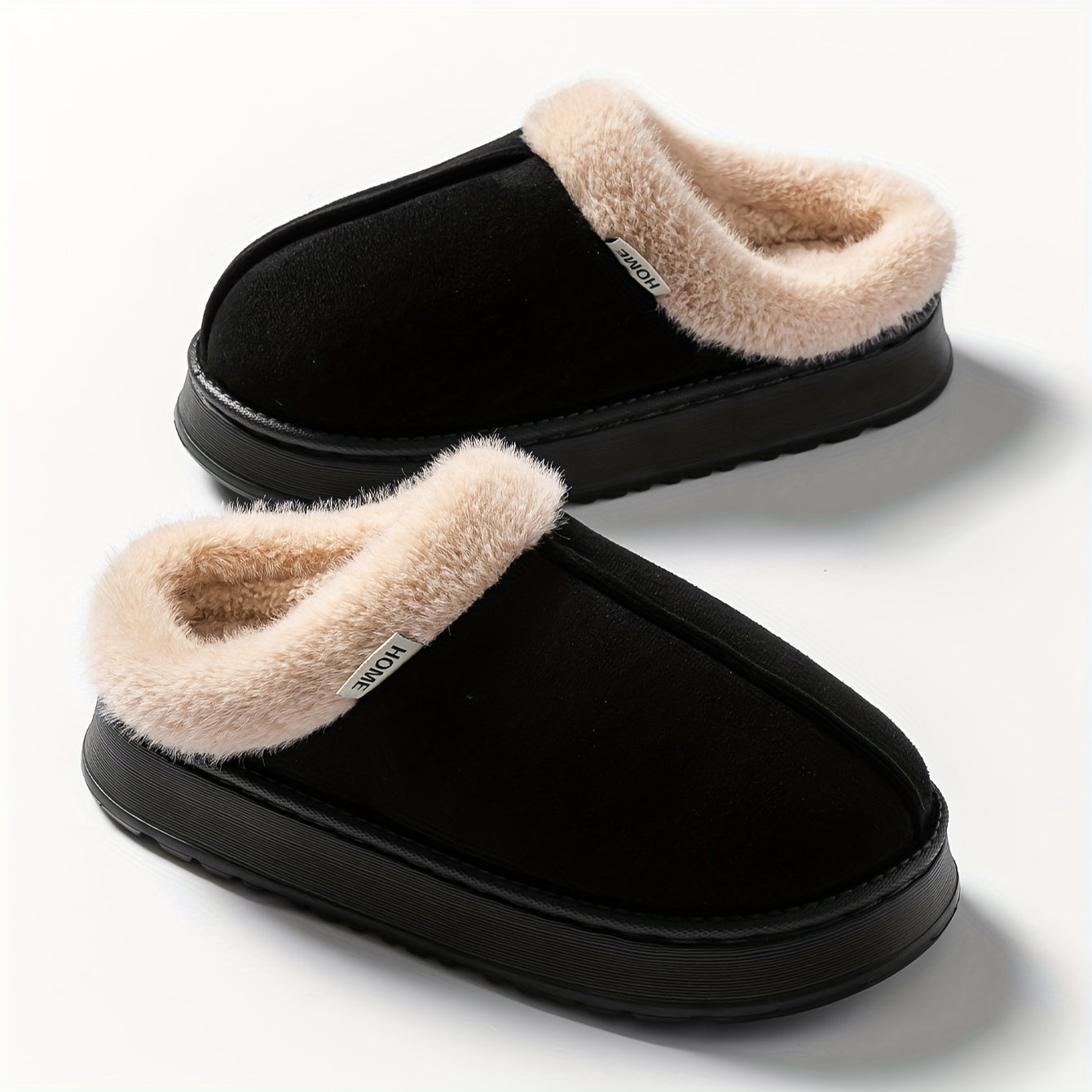 Women's Plush Winter Slippers Black Faux Fur Indoor Shoes Non-Slip