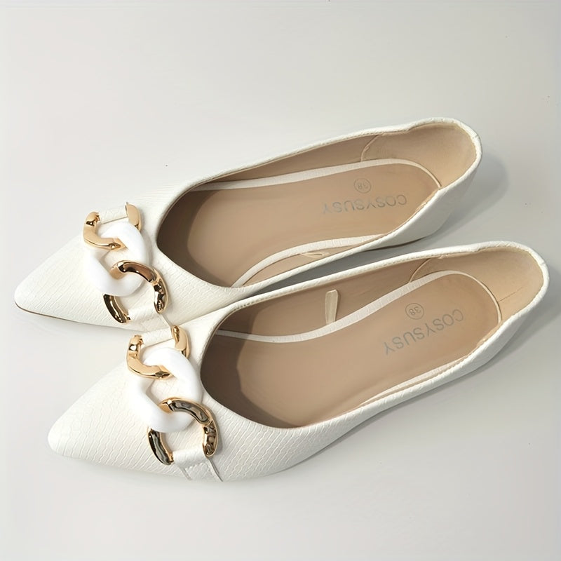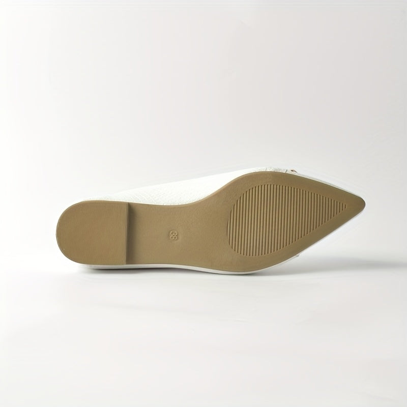 Women's Pointed Toe Slip-On Flats Black White PU Ballet Shoes Comfortable All-Season