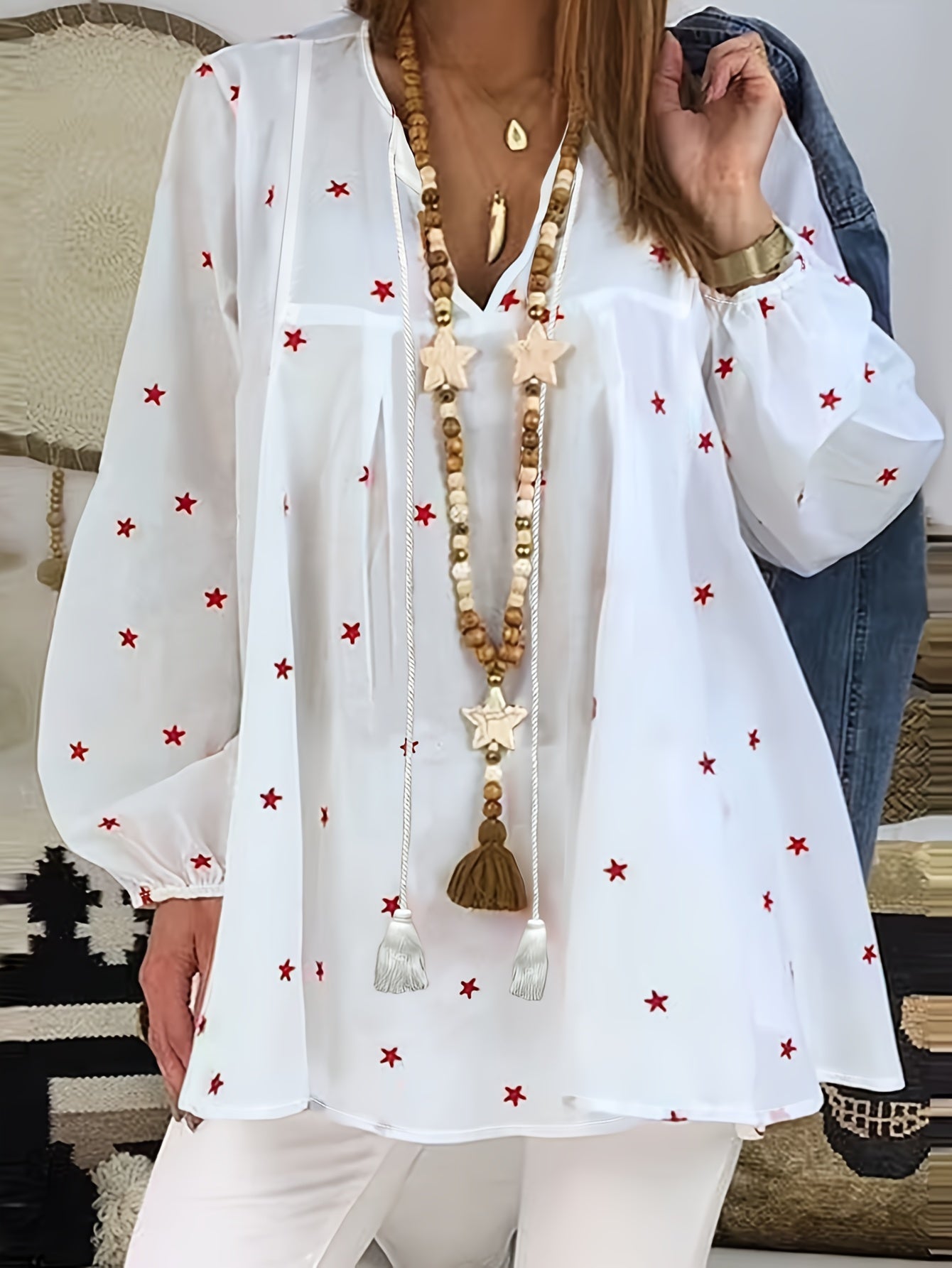 Women's Polyester V-Neck Shirt With Drawstring All-Season Oversized Blouse
