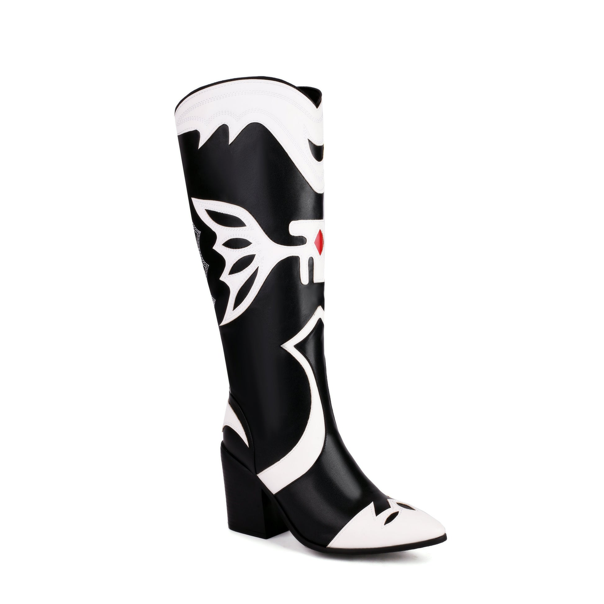 Women's Printed Chunky Heel Western Boots Pointed Toe Retro