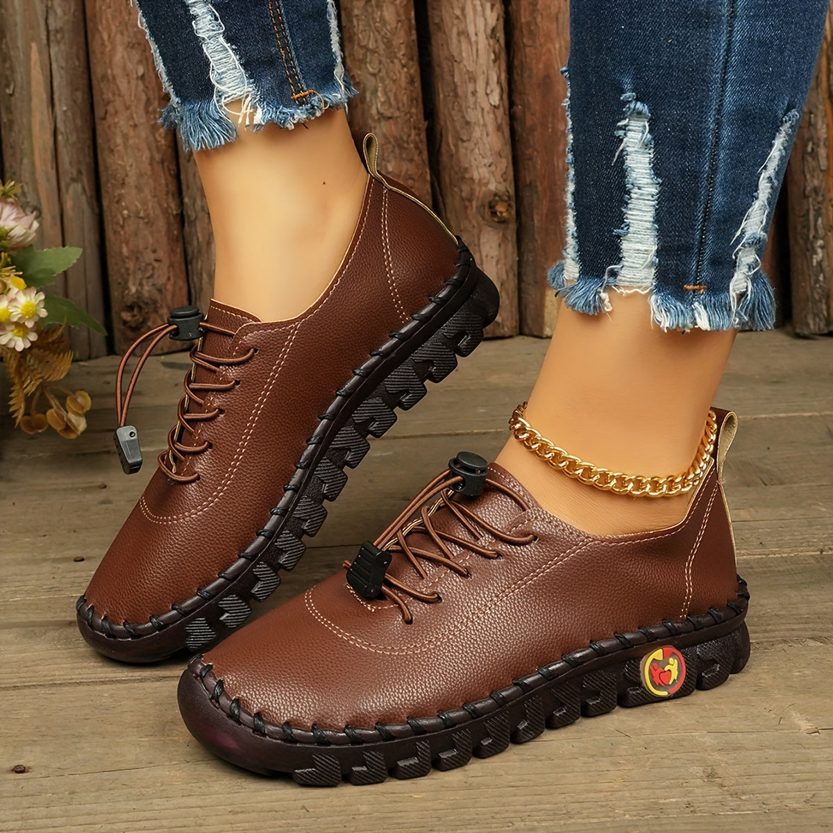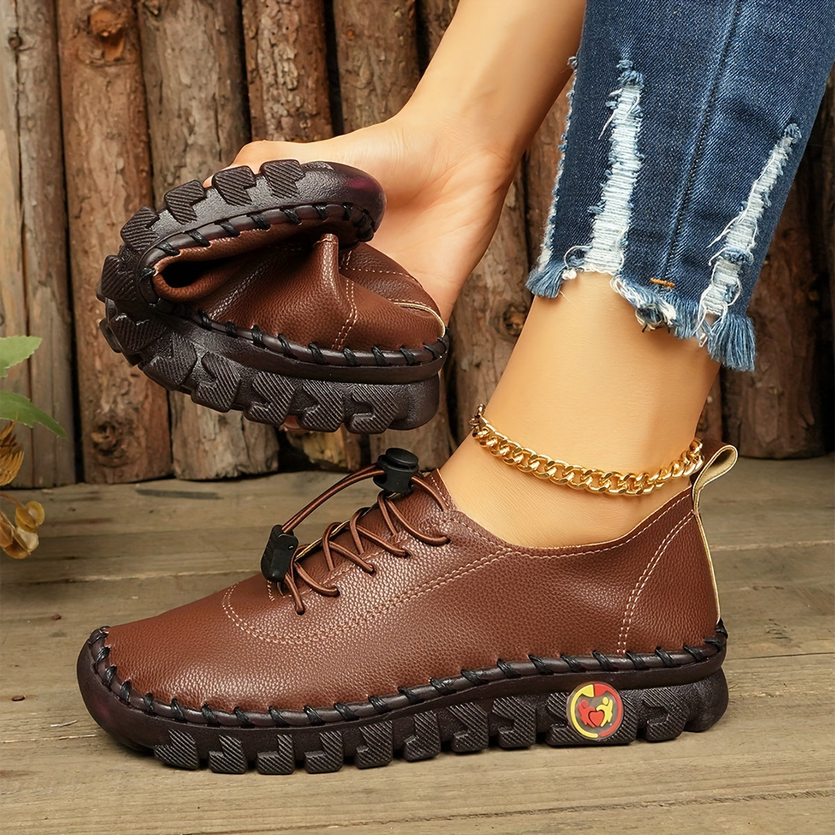 Women's Retro Stitched PU Cover Sneakers Casual Shoes Black Red Heart