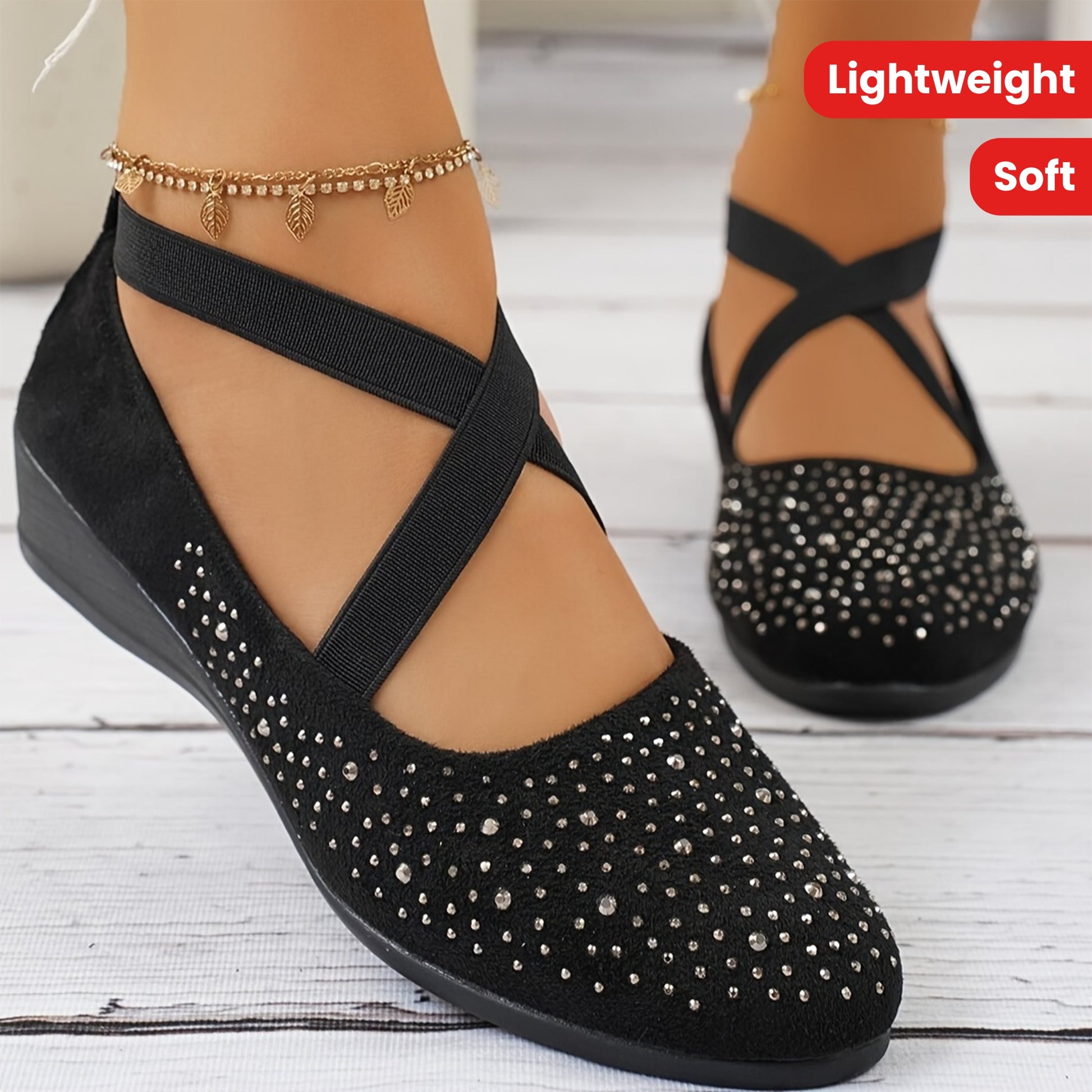 Women's Rhinestone Pattern Slip-On Wedge Shoes Light Comfortable