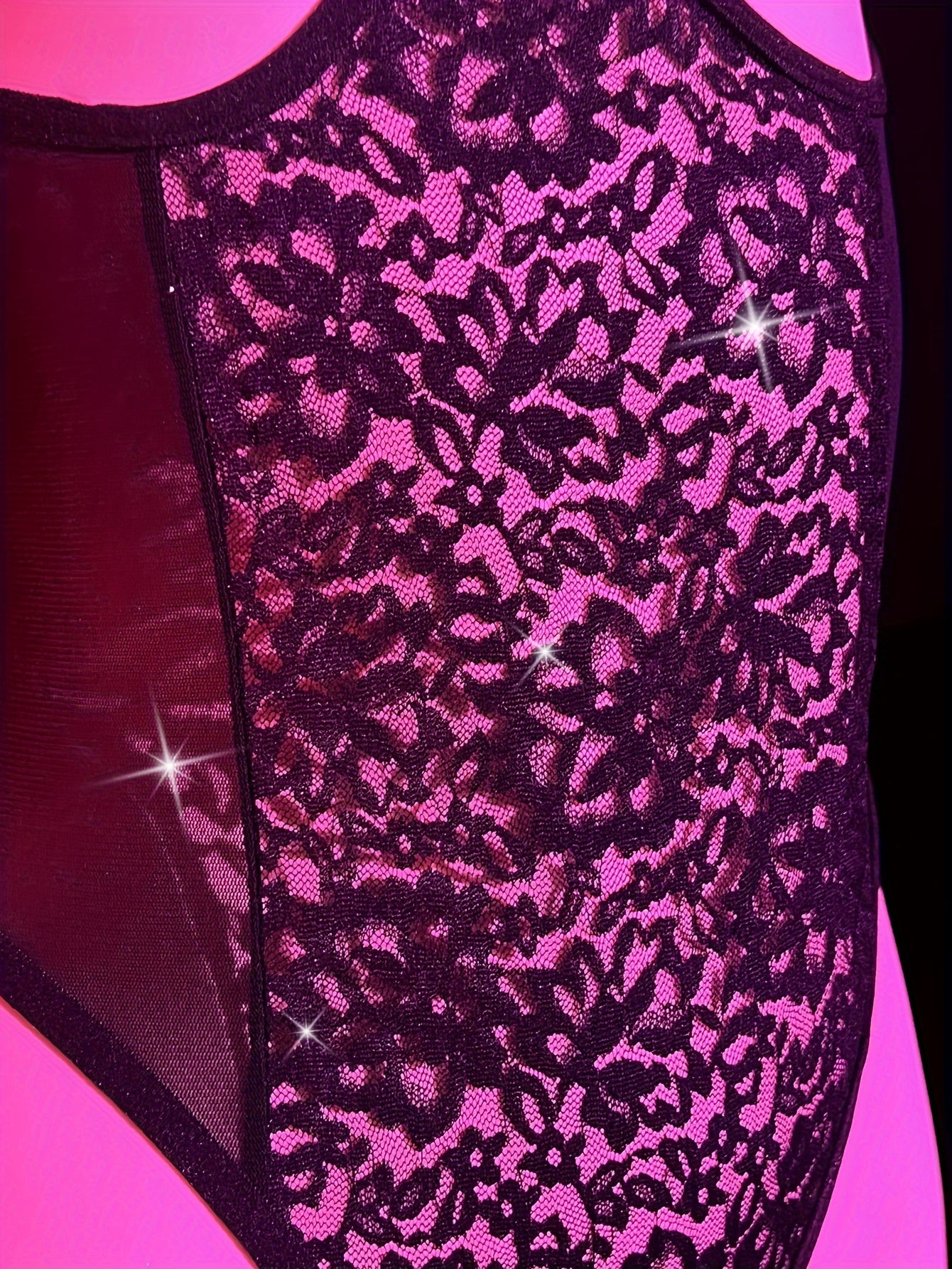 Women's Lace Lingerie Set with Flower Contrast Teddy and Open Crotch Bodysuit