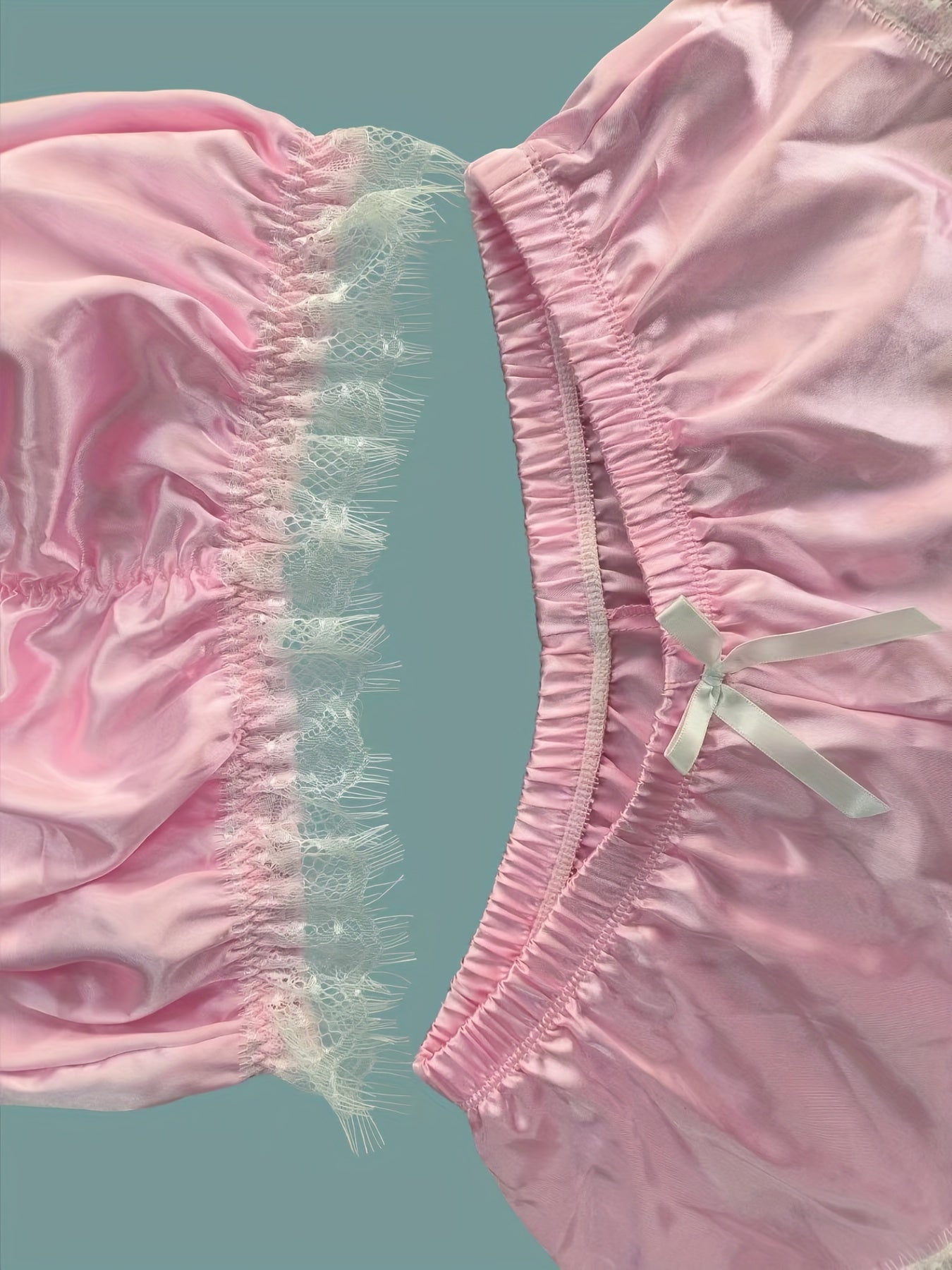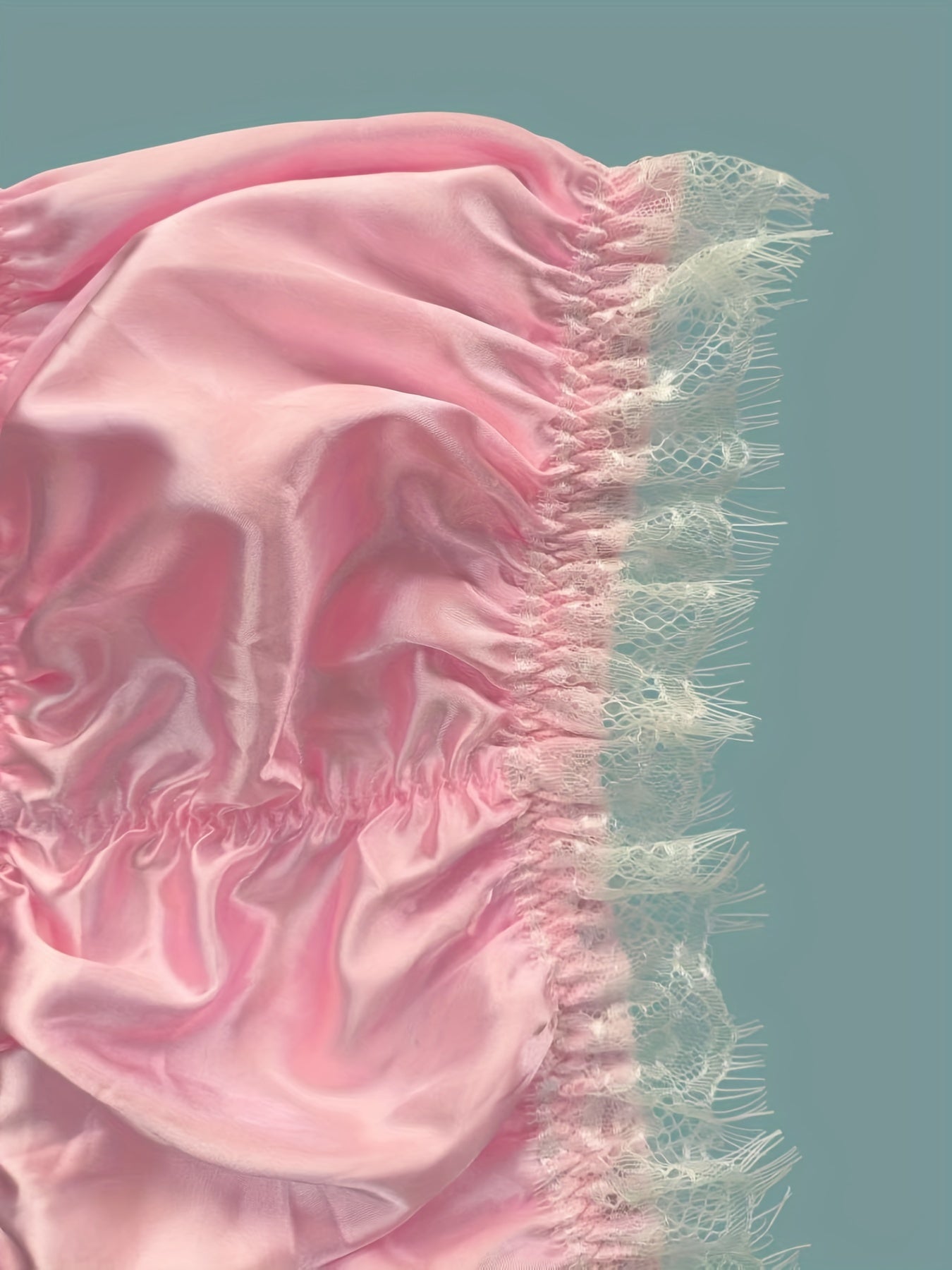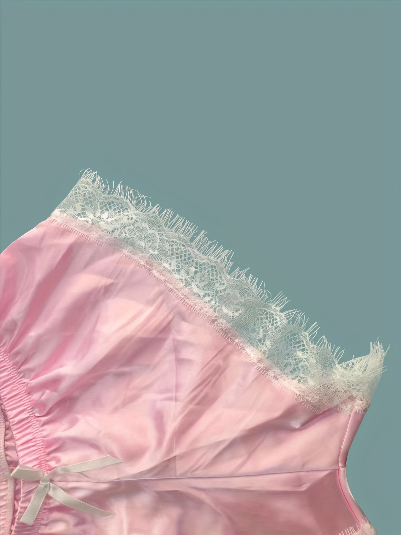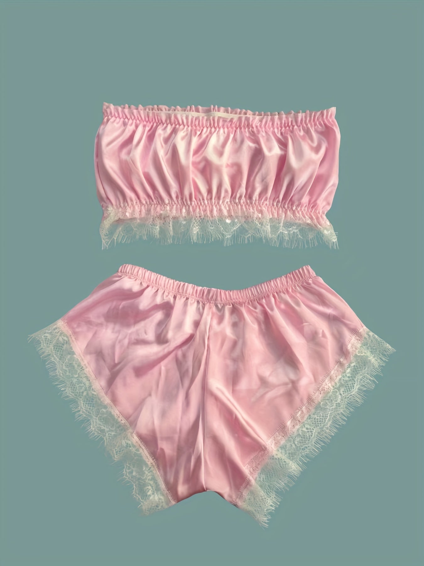 Women's Satin Sleepwear Set with Lace Trim Strapless Pajama Top and Shorts