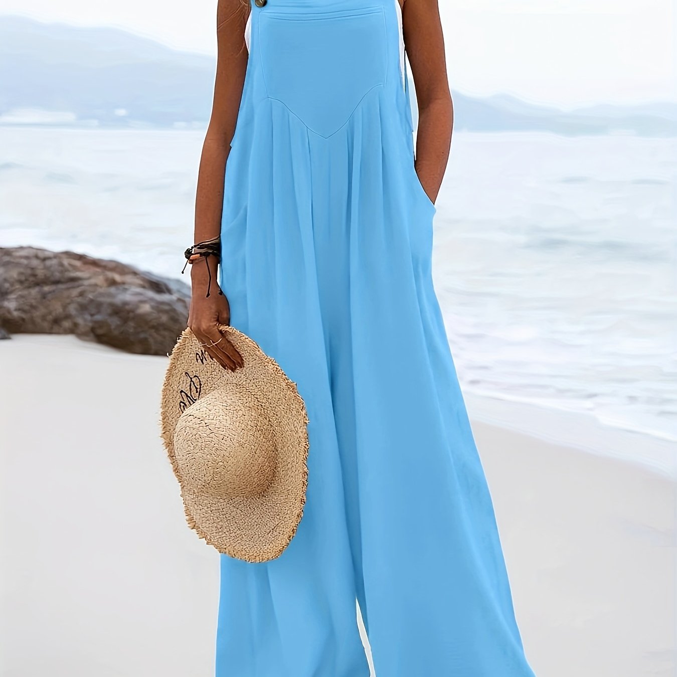 Women's Sleeveless Jumpsuit with Stretchy Polyester Spandex Blend for Spring Summer Fall