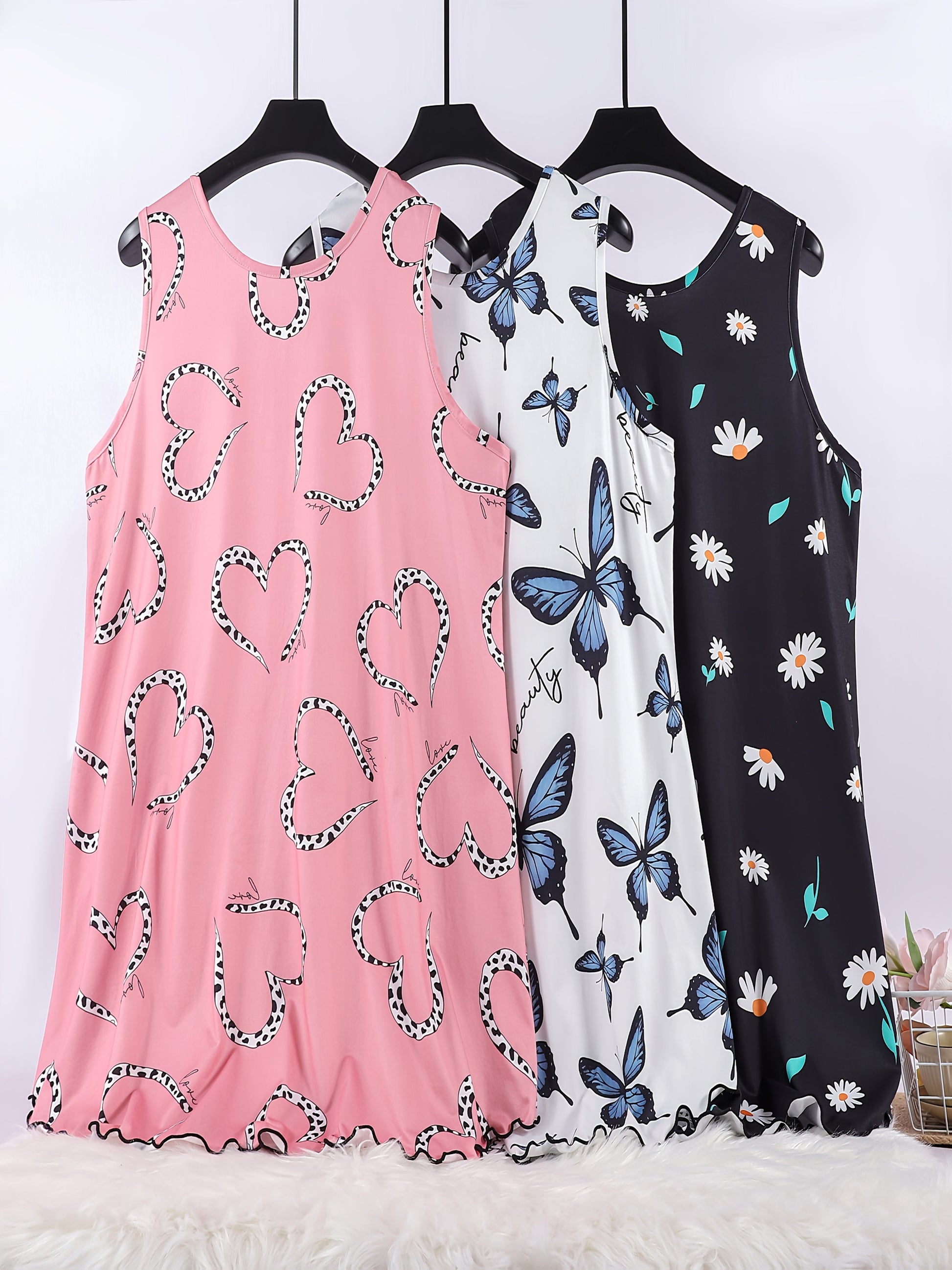 Women's Sleeveless Nightgowns 3-Pack Summer Sleepwear Plus Size Floral Butterflies