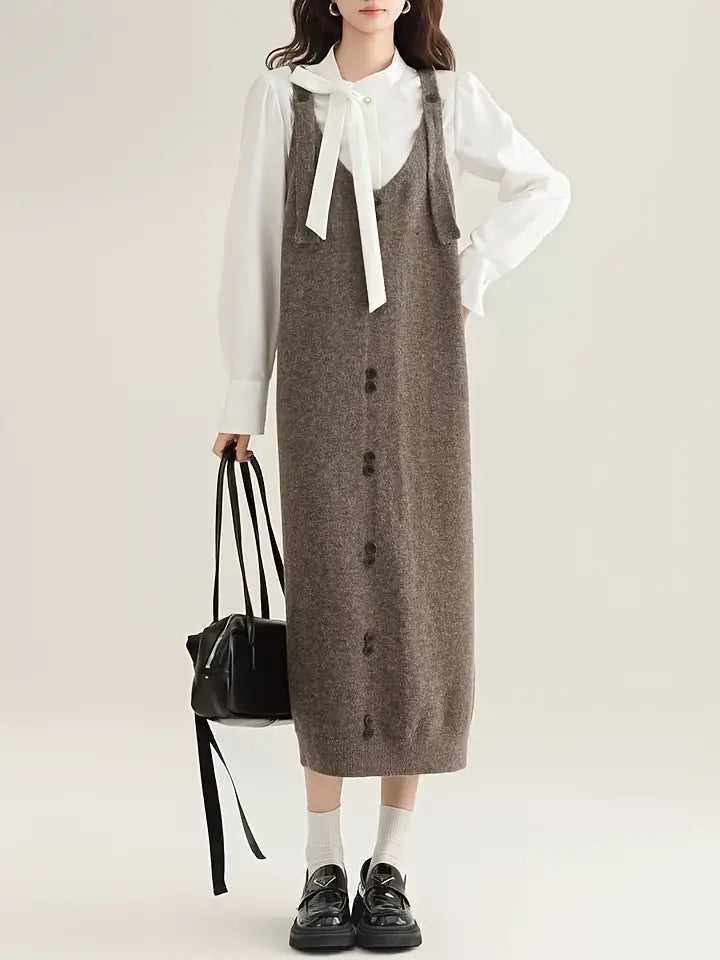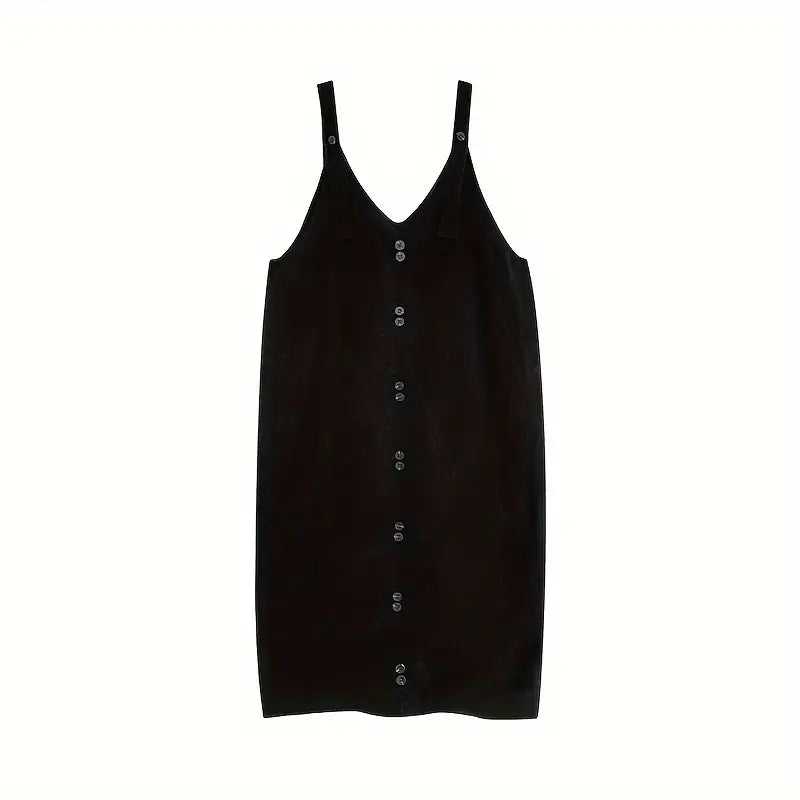 Women's Sleeveless V-Neck Maxi Dress with Buttons, Elastic Solid Color Casual Layering