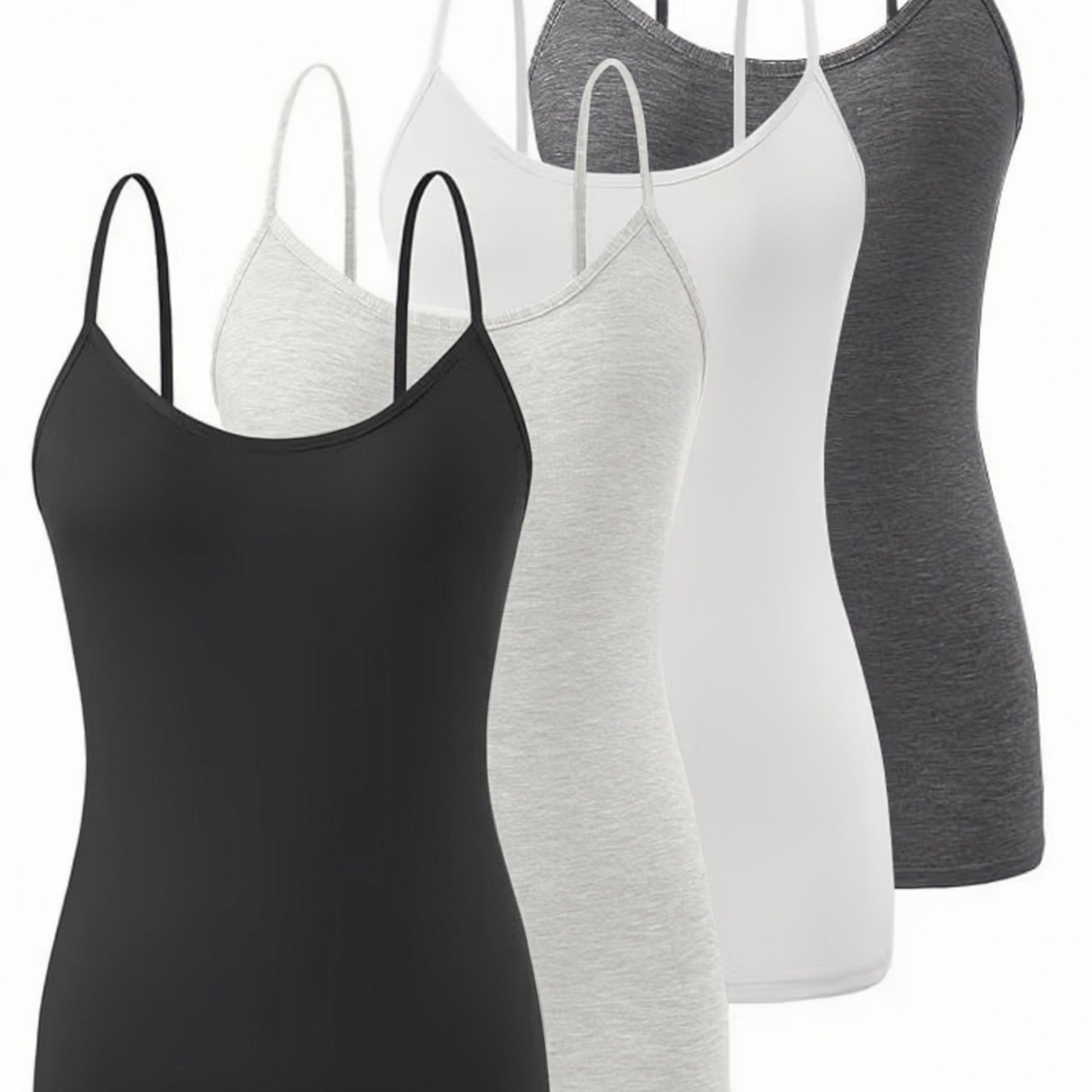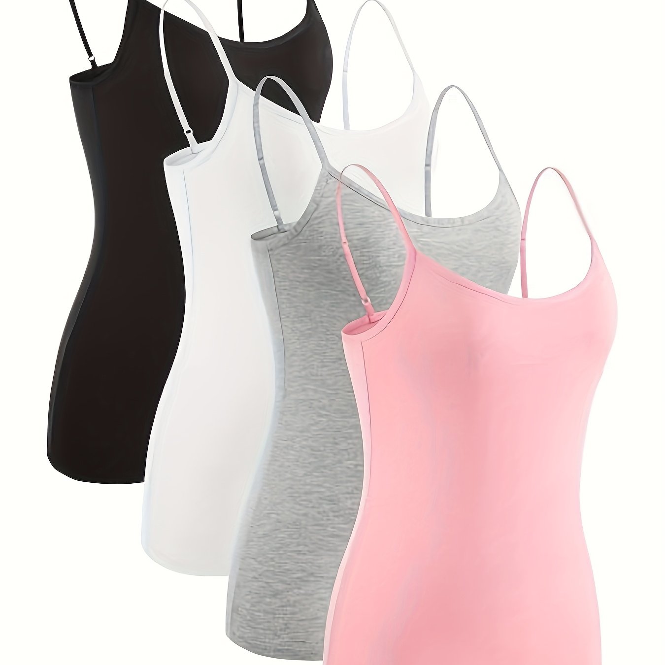 Women's Slim Fit Camisole Tops 4 Pack Spaghetti Strap Summer Casual Solid Colors