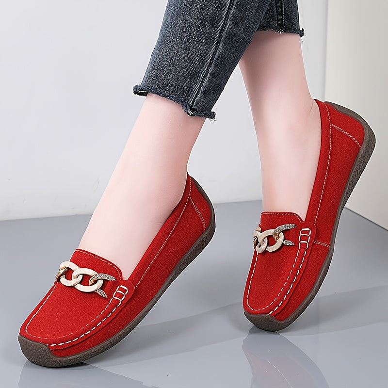 Women's Slip-On Loafers Faux Cover Upper Black Flat Shoes