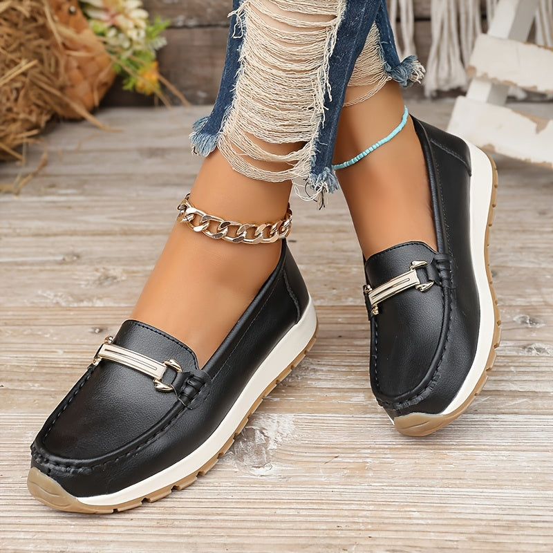 Women's Slip-On Loafers Faux Leather Casual TPR Sole Round Toe Autumn Shoes
