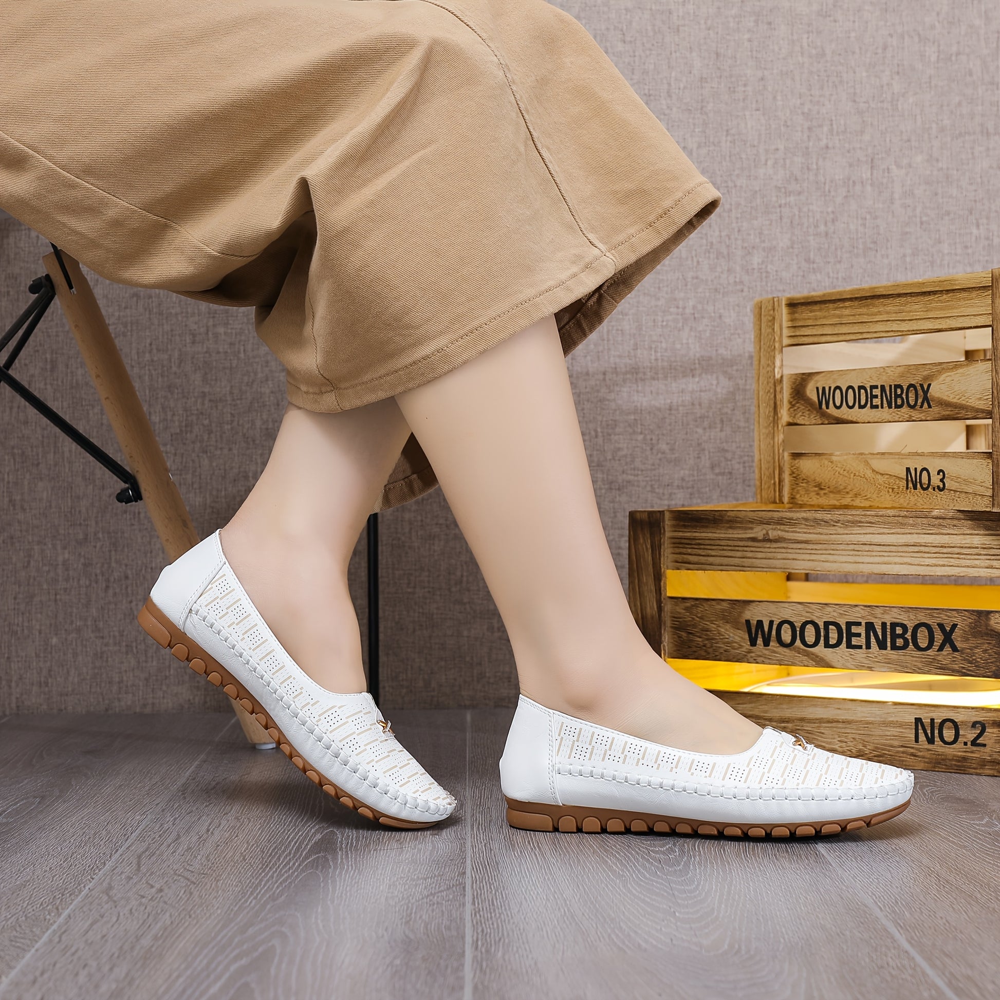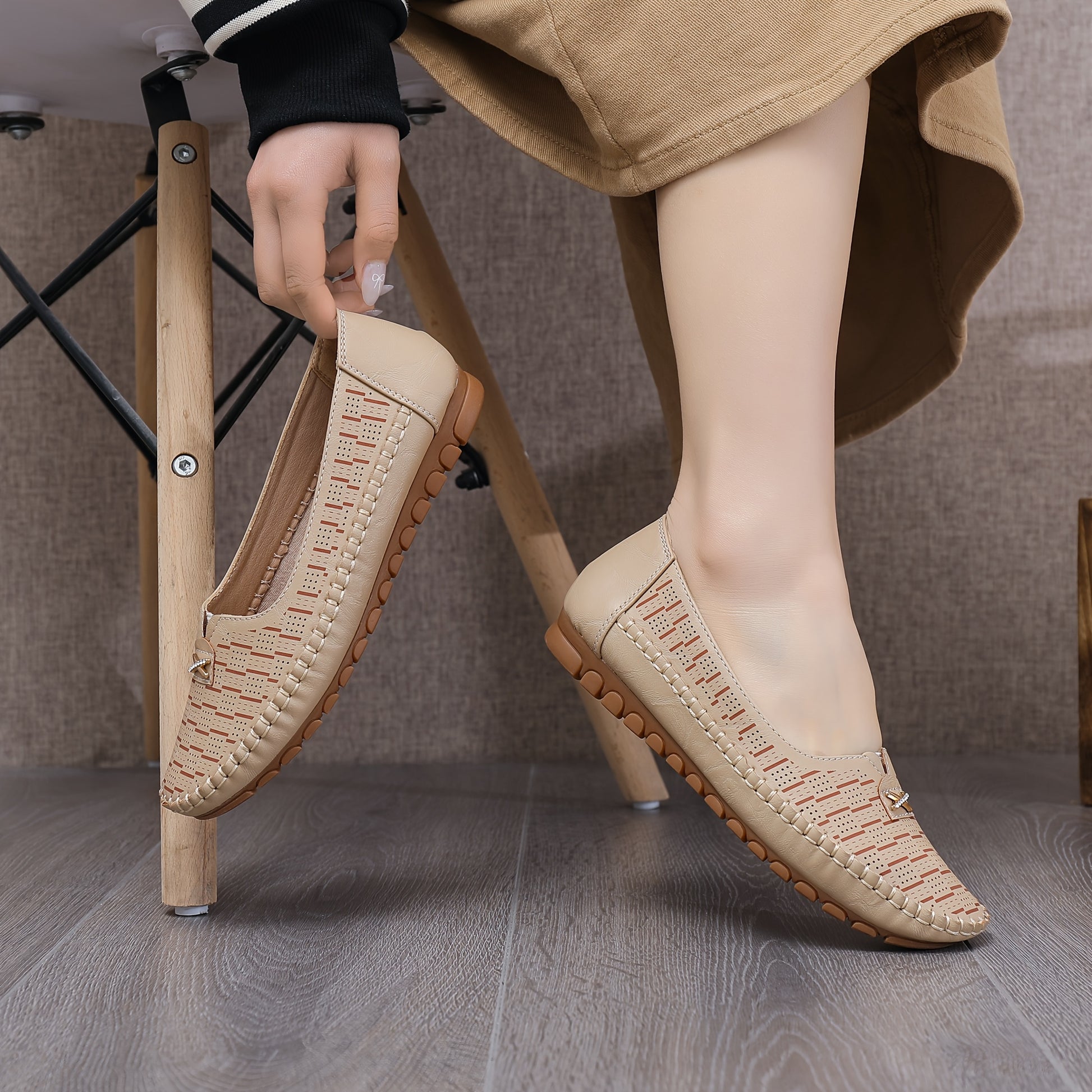 Women's Slip-On Loafers with Metal Buckle, Solid Color, Plain Toe