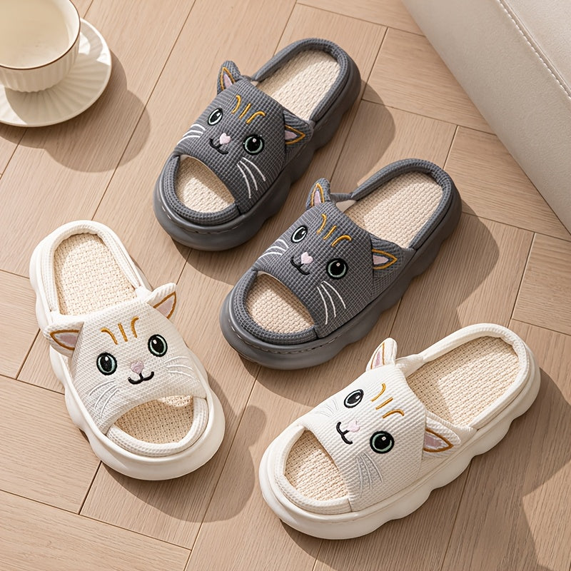 Women’s Slip-On Slippers with Cat Face Design, Soft Fabric, Indoor Shoes