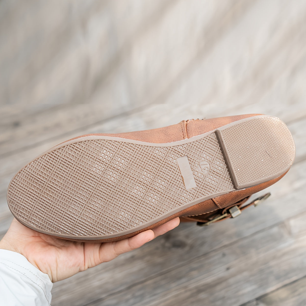 Women's Solid Color Mid-Calf Slouchy Boots with Side Zipper Buckle