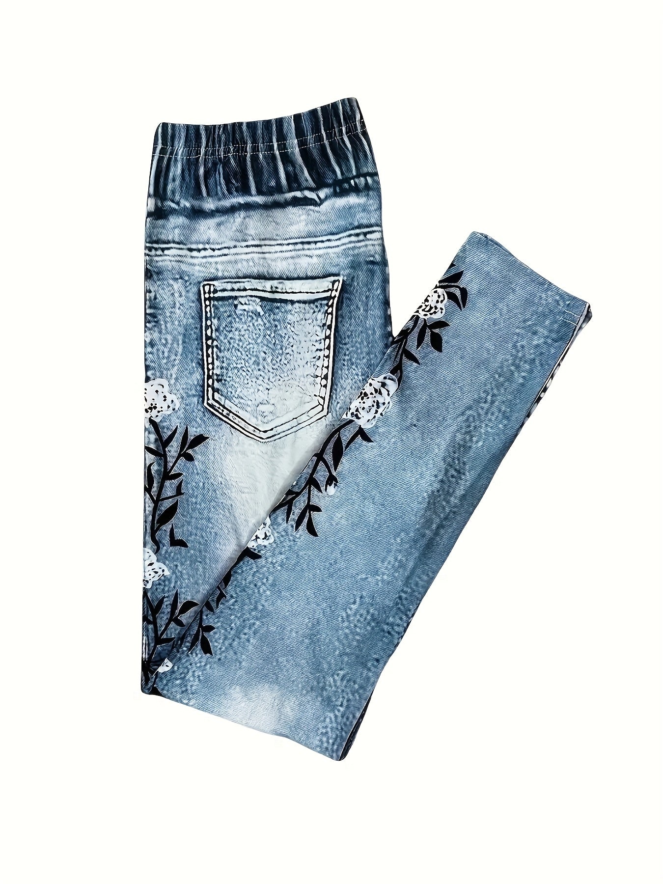 Women's High Waist Floral Print Skinny Jeans Stretch Jeggings for All Seasons