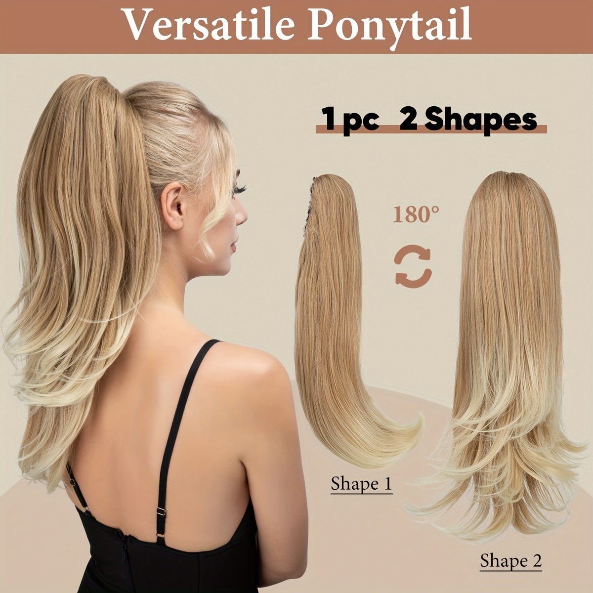 Women's Synthetic Curly Wave Ponytail Extension with 180° Rotating Claw Clip