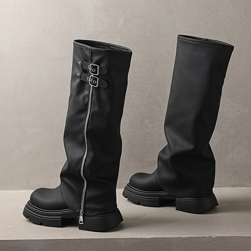Women's Synthetic Over Knee Block Heel Boots Brown Slip-On Thick Sole