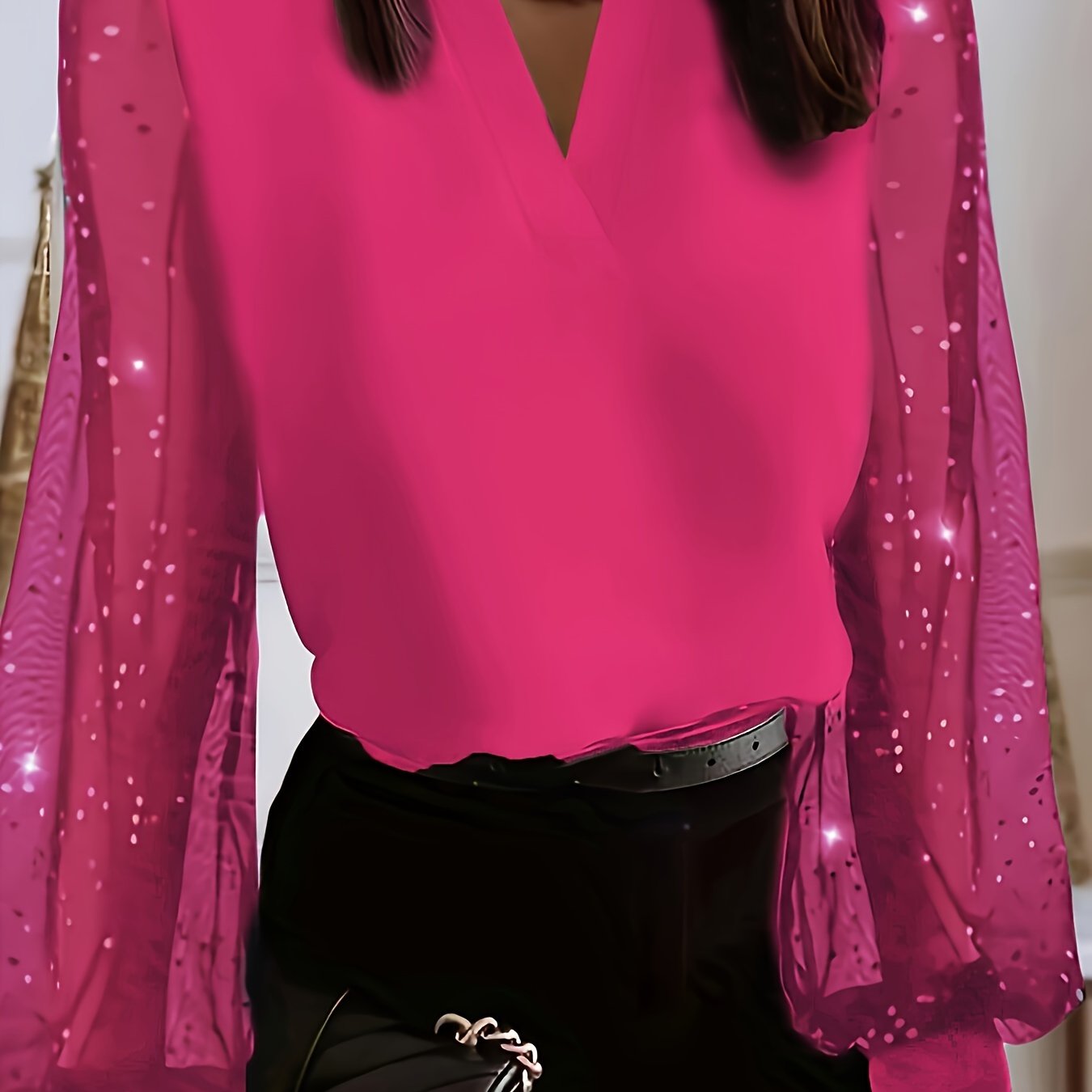 Women's V-Neck Blouse Long Sleeve Polyester Spandex Solid Color Casual Shirt
