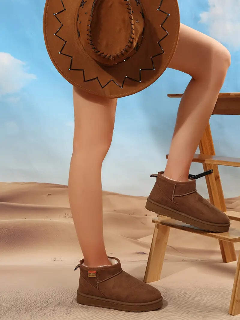 Women's Velboa Ankle Snow Boots Rubber Sole Casual Solid Color Fabric
