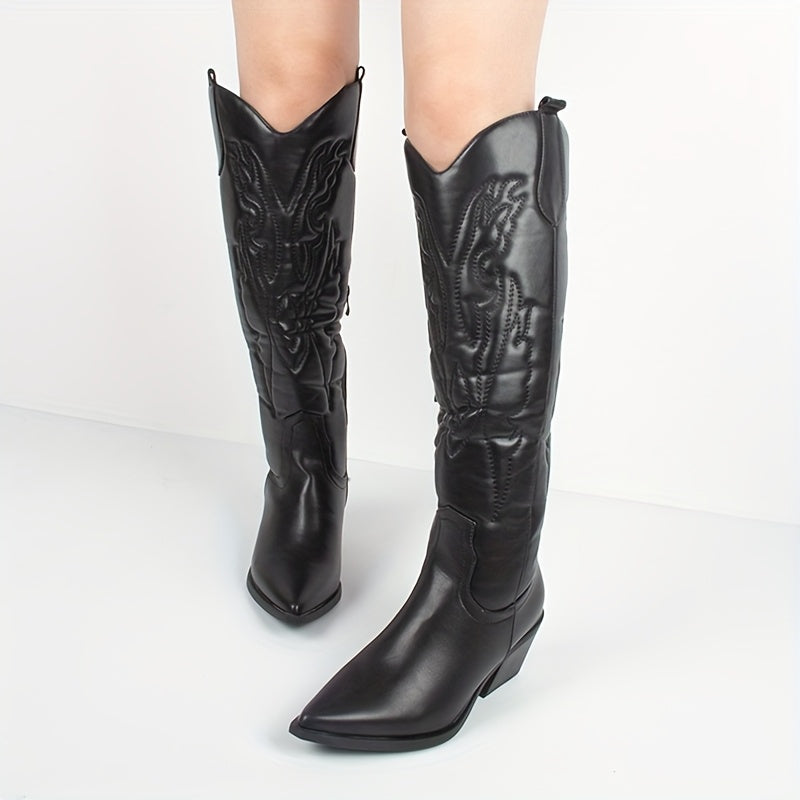 Women’s Western Cowboy Boots Faux Cover Embroidered Knee-High Pointed Toe