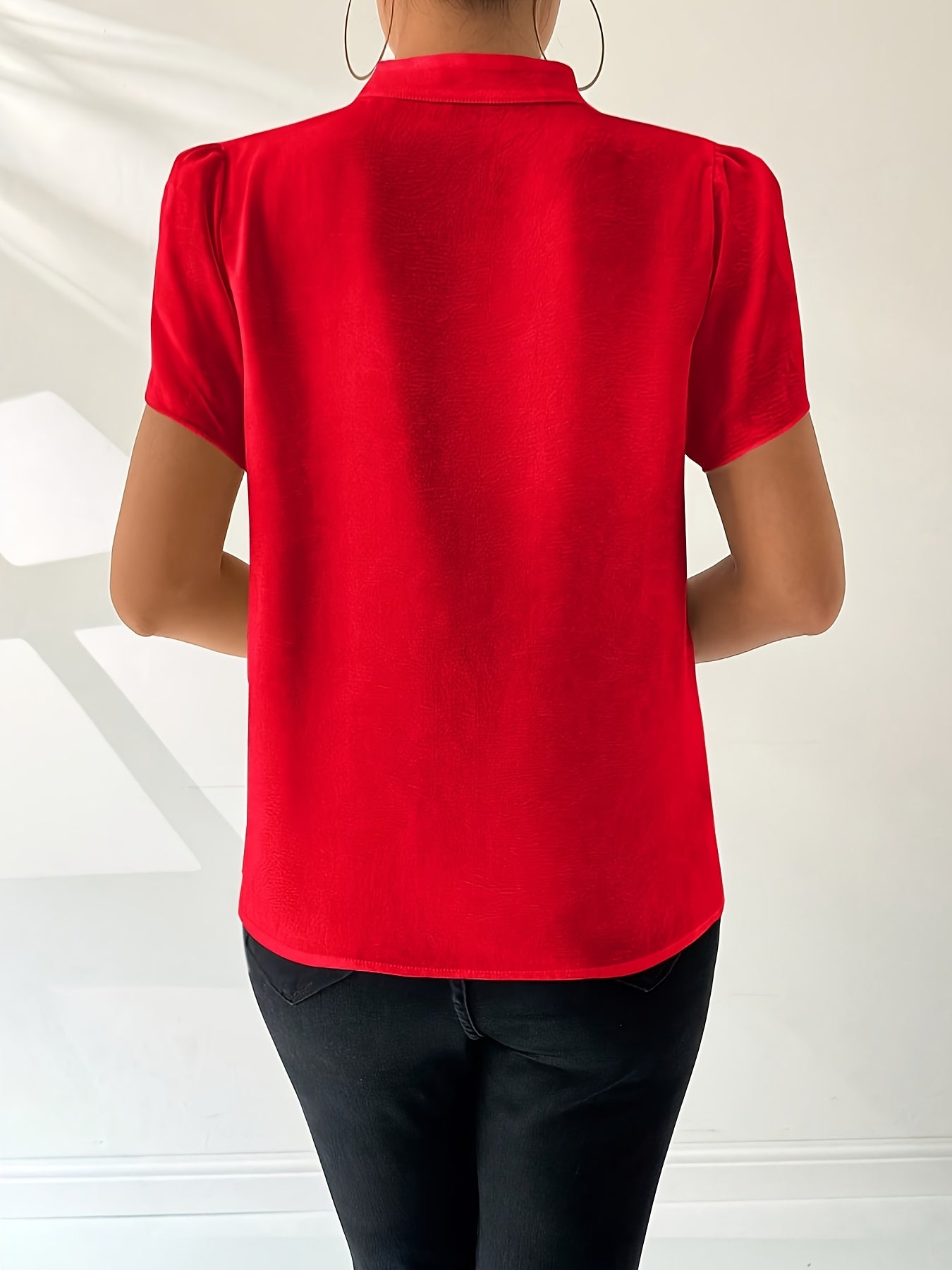 Women's White Breathable Polyester Blouse with Stand Collar and Ruffle Details