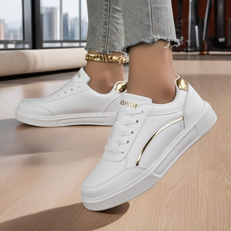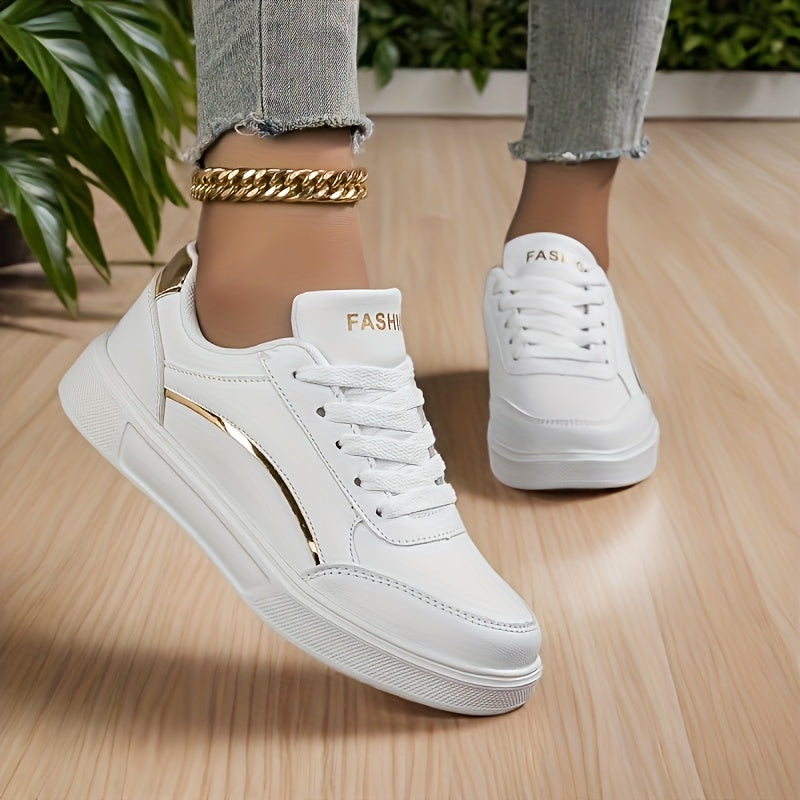 Women's White Lace-Up Sneakers - Lightweight, Casual, Plus-Size