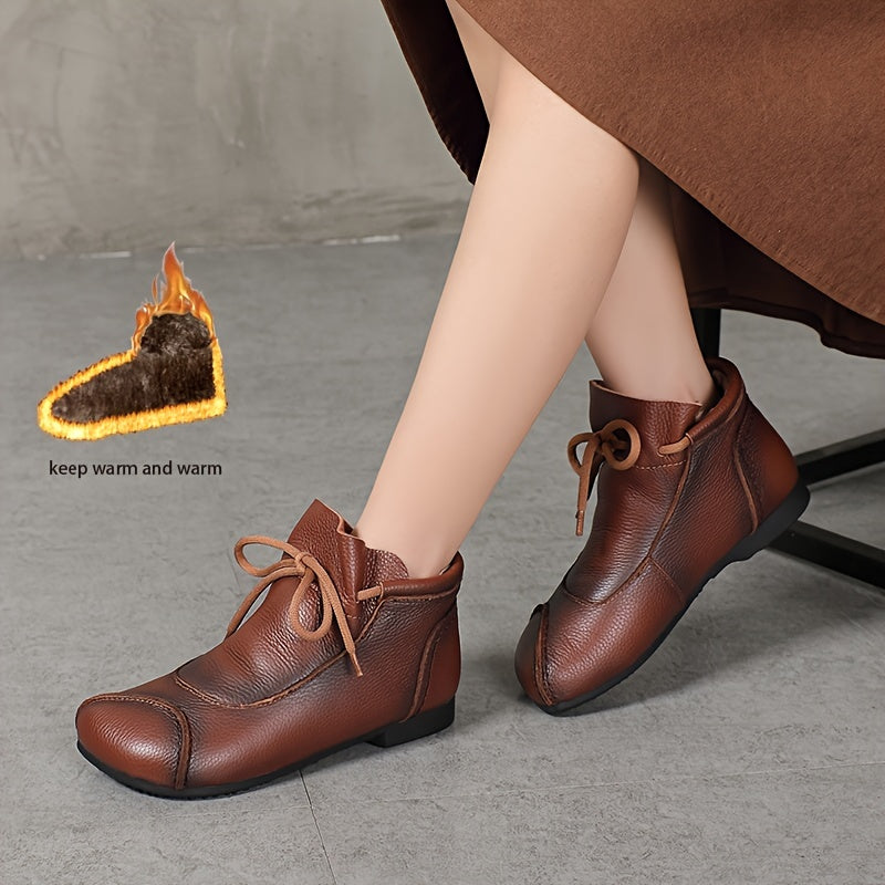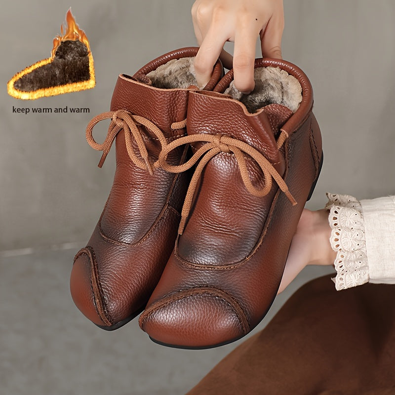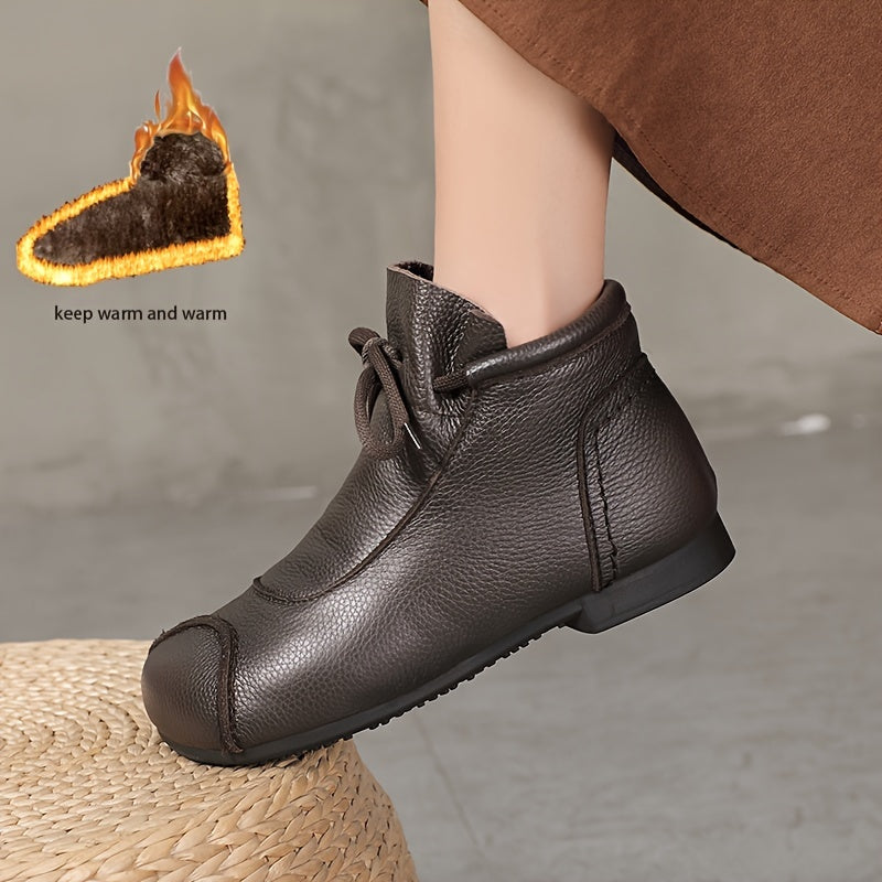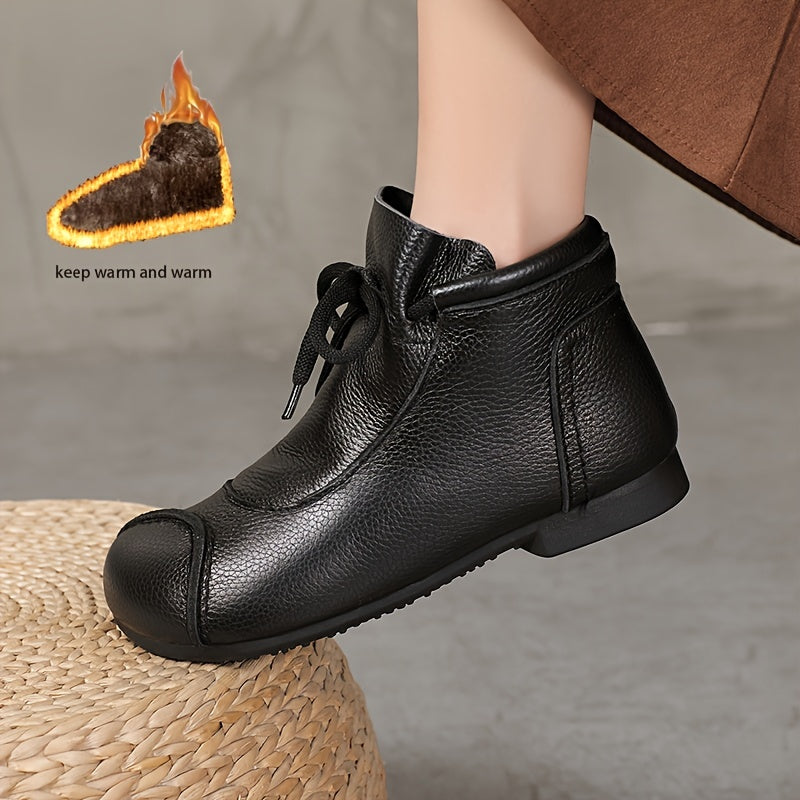 Women's Winter Ankle Boots Genuine Leather Fleece Lined Black